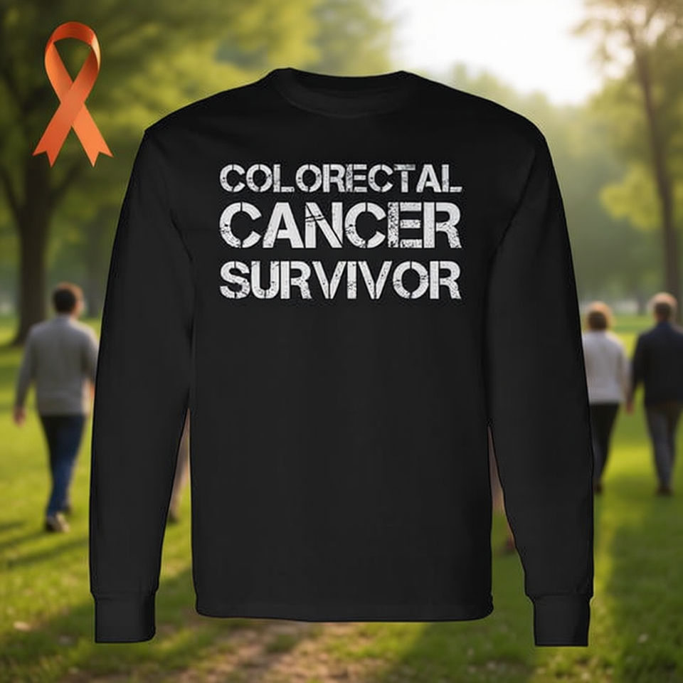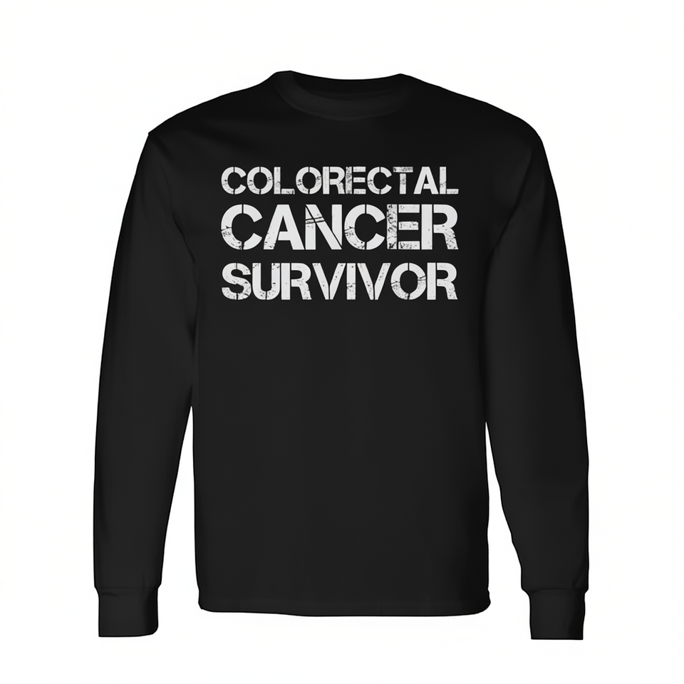 T-shirt a maniche lunghe girocollo unisex per sopravvissuti al cancro al colon e al retto, per eventi di sensibilizzazione, corsa e camminata, con stampa serigrafica