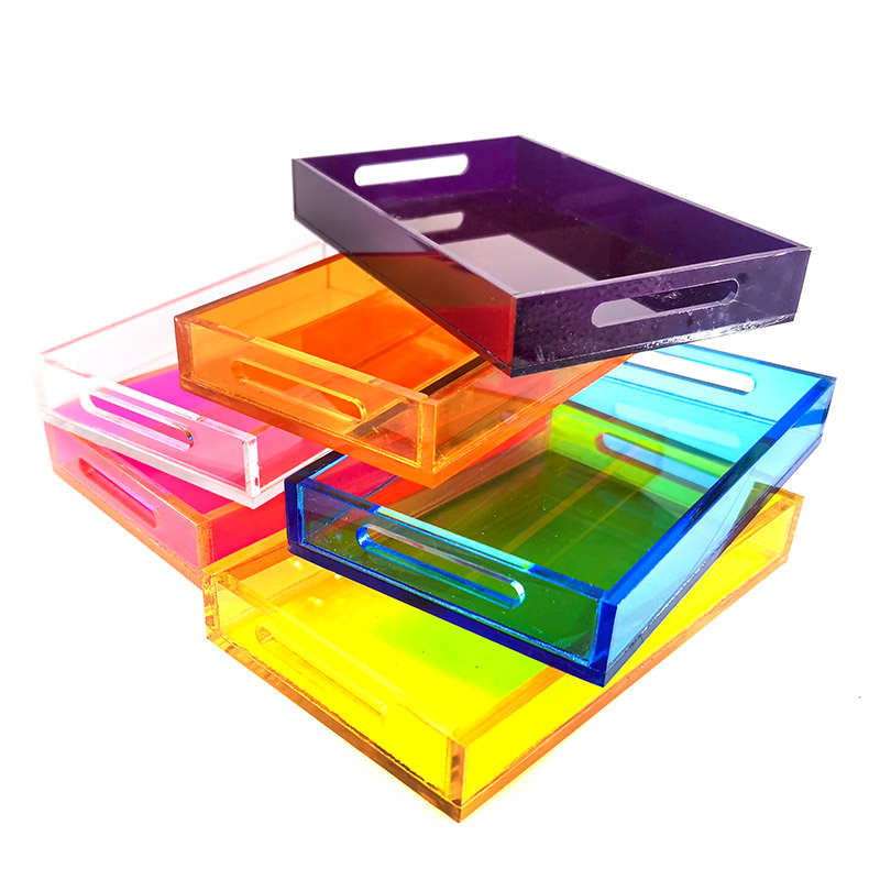 Scatola per cubi in acrilico colorato scatola per esposizione trasparente scatola quadrata a 5 lati con organizzatori per trucco per ufficio in plexiglass scorrevole