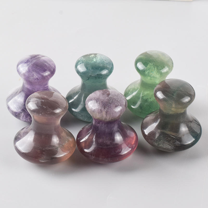 Colorato Fluorite giada viso e corpo massaggio pietra Gua Sha bordo a forma di fungo massaggio oculare per il ringiovanimento e Anti-rughe