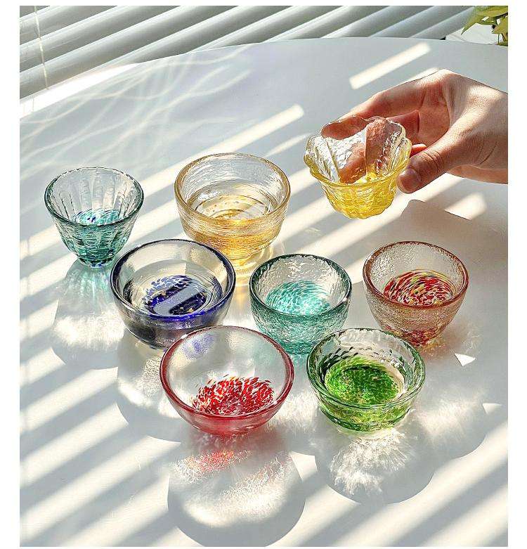 Set di Bicchieri per Sake in Vetro Colorato, Nove Pezzi Quadrati, Tazzine Giapponesi per Degustazione Tè, Mini Bicchieri per Vino Bianco