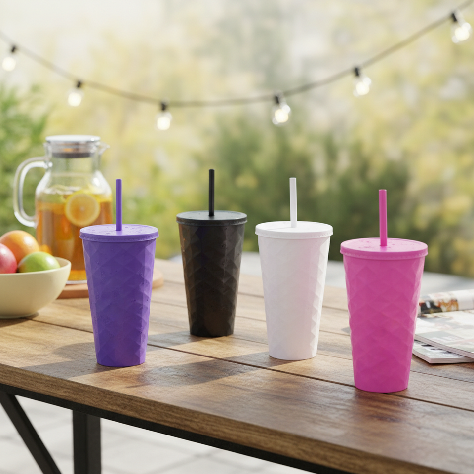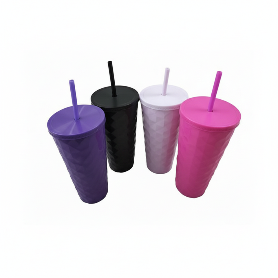 Bicchieri di Plastica Colorati 10x177CM con Cannuccia per Vendita all'Ingrosso e al Dettaglio per Bevande