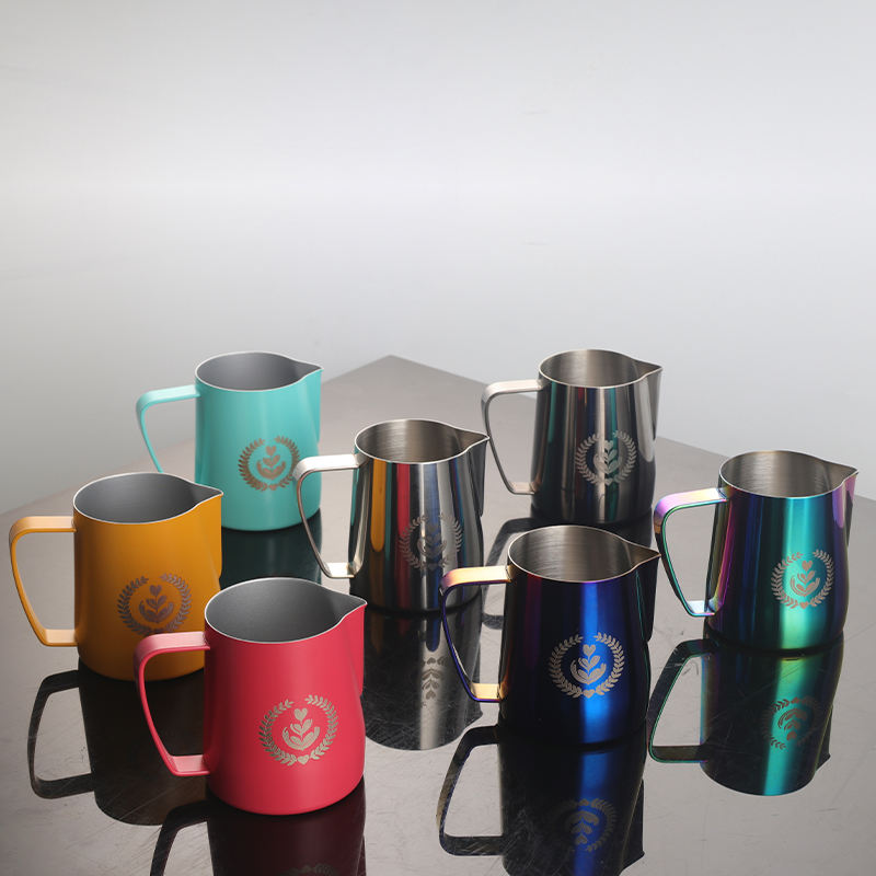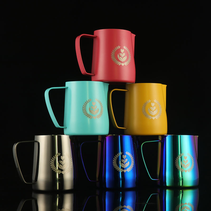 Tazza Colorata in Acciaio Inox 304 per Montare il Latte, Brocca per Schiumare il Latte per Baristi, Accessori per Caffè Espresso