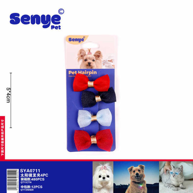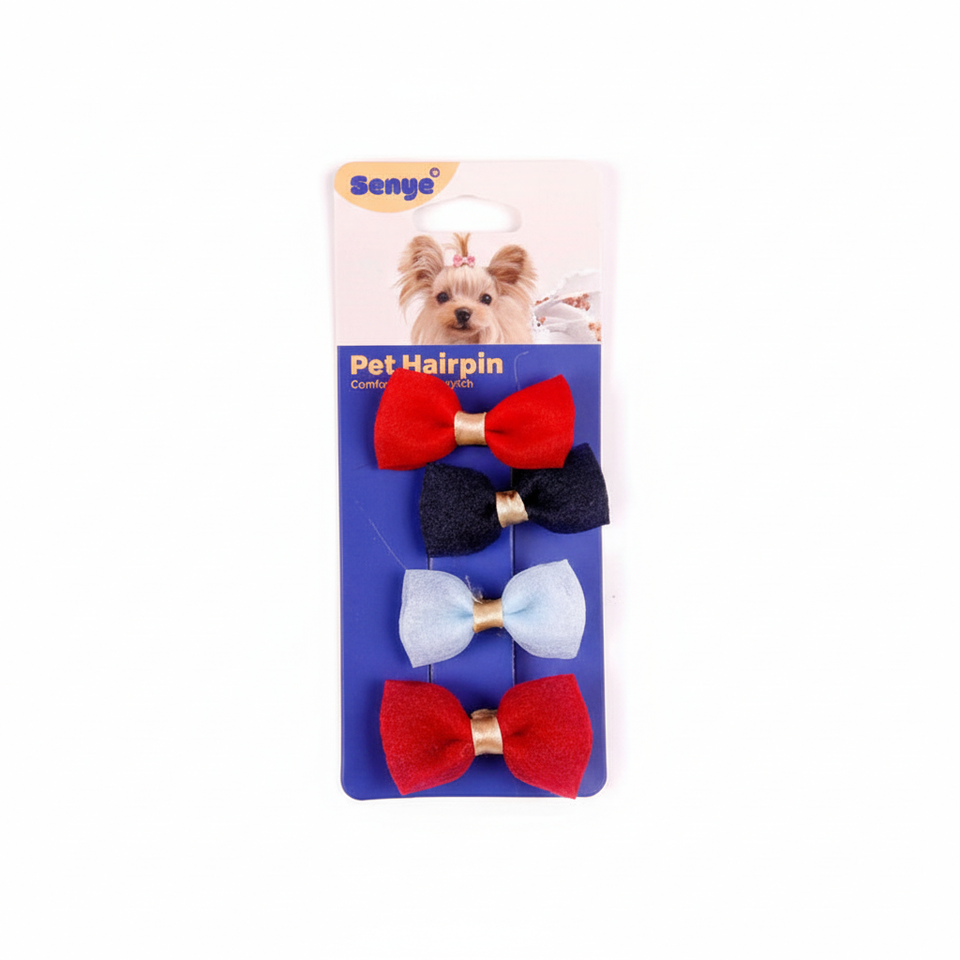 Set di forcine per animali da compagnia 4 pezzi colorato Design resistente in poliestere fiocco clip per cani e gatti colori misti 5x4cm ornamenti eleganti
