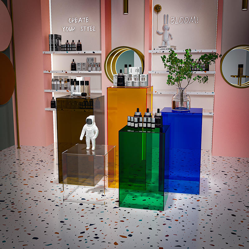 Espositore in Acrilico Colorato su Misura, Piedistalli Trasparenti in Lucite per Negozi, Gioielli, Borse, Scarpe (Ingrosso)