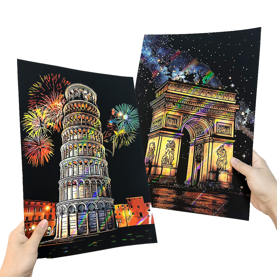 Colorful Architecture Night Landscape Scratch Art Paper Creative Birthday Gift Featuring Around the World Gift Card Included