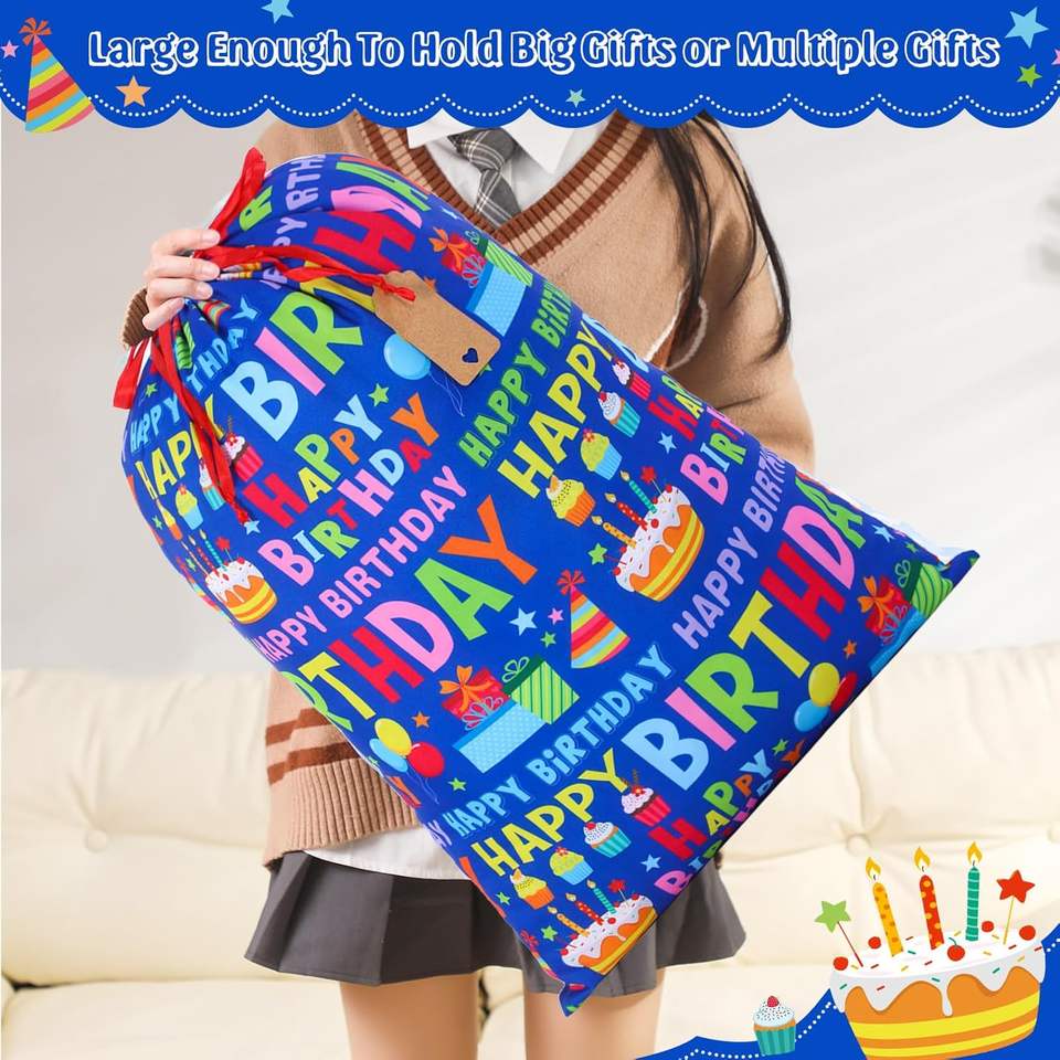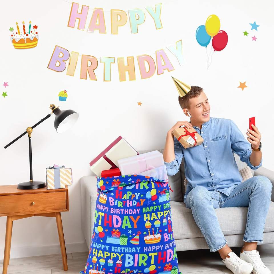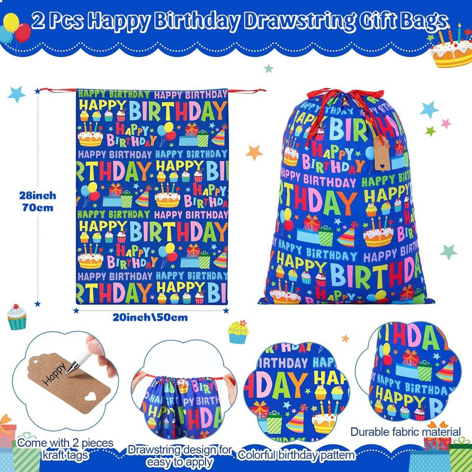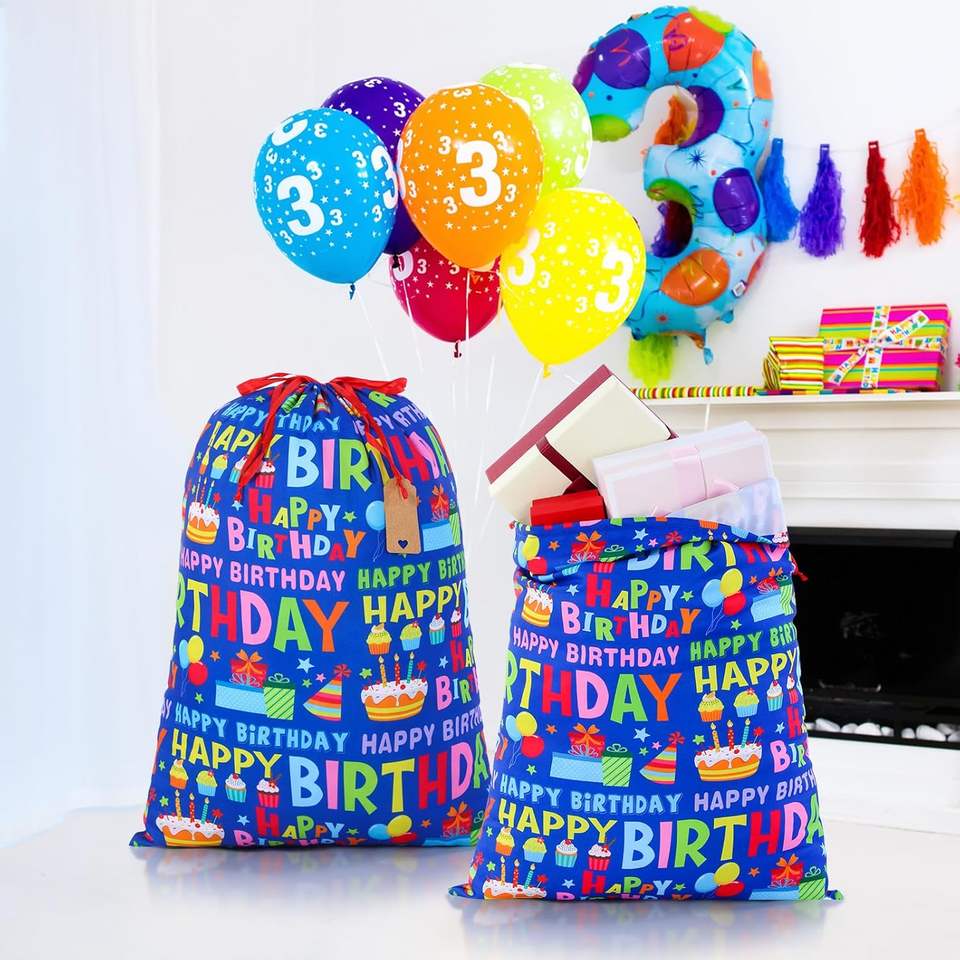 Sacchetti Regalo in Tela Colorati a Tema Compleanno con Cordoncino, Borse Riutilizzabili per Regali e Feste
