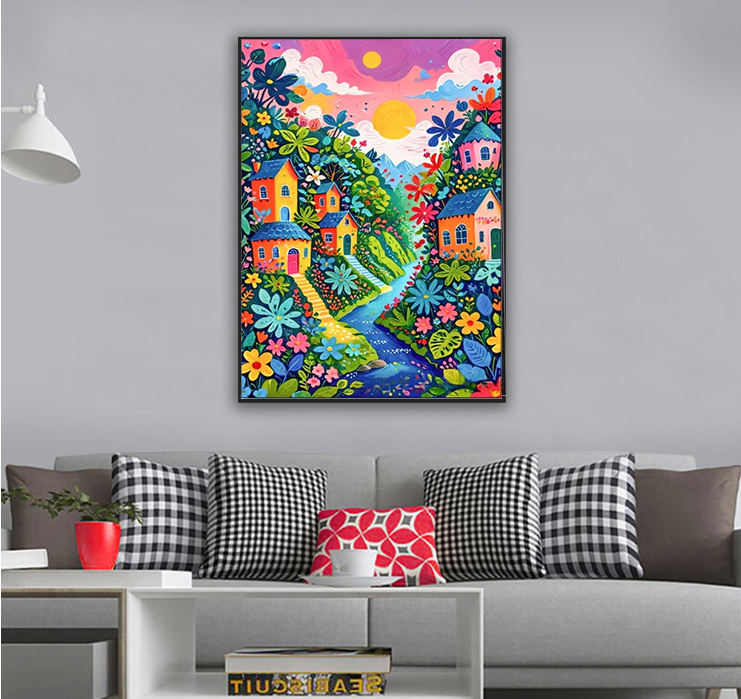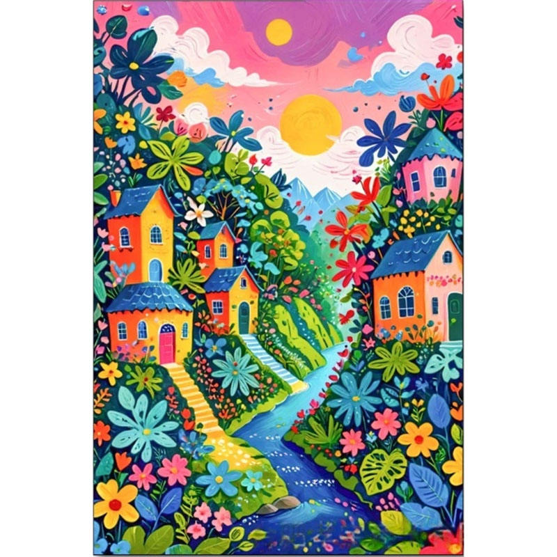 Nome del prodotto:Dipinti di diamanti con paesaggio colorato di casa di campagna