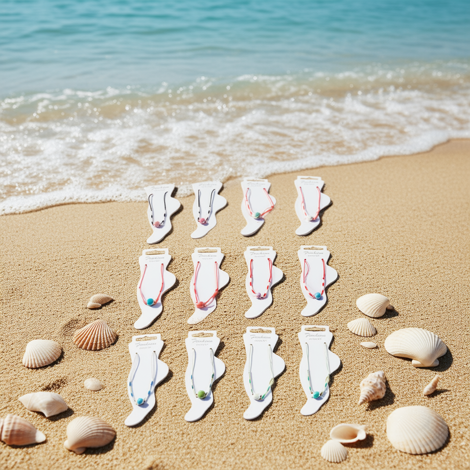 Cavigliera in ceramica colorata con conchiglie, 2 pezzi per colore, gioielli alla moda da donna