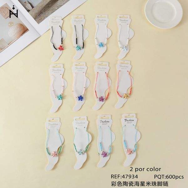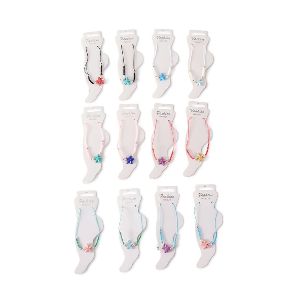 Cavigliera con perline a forma di stella marina in ceramica colorata, gioiello alla moda per donna, 2 per colore