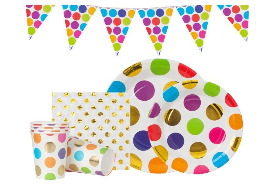 Piatti di Carta Colorati Usa e Getta a Pois per Feste, Stoviglie per Antipasti, Pranzi, Cene e Dessert, Compleanni per Bambini