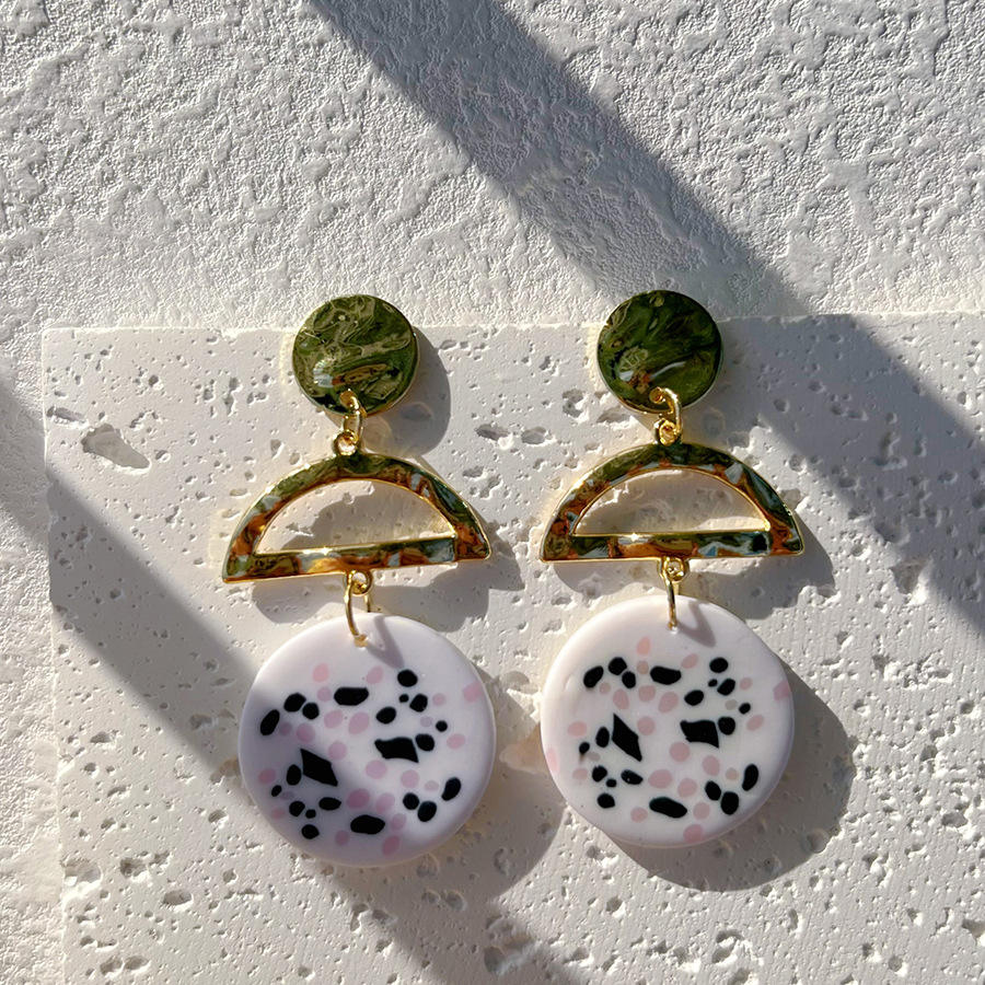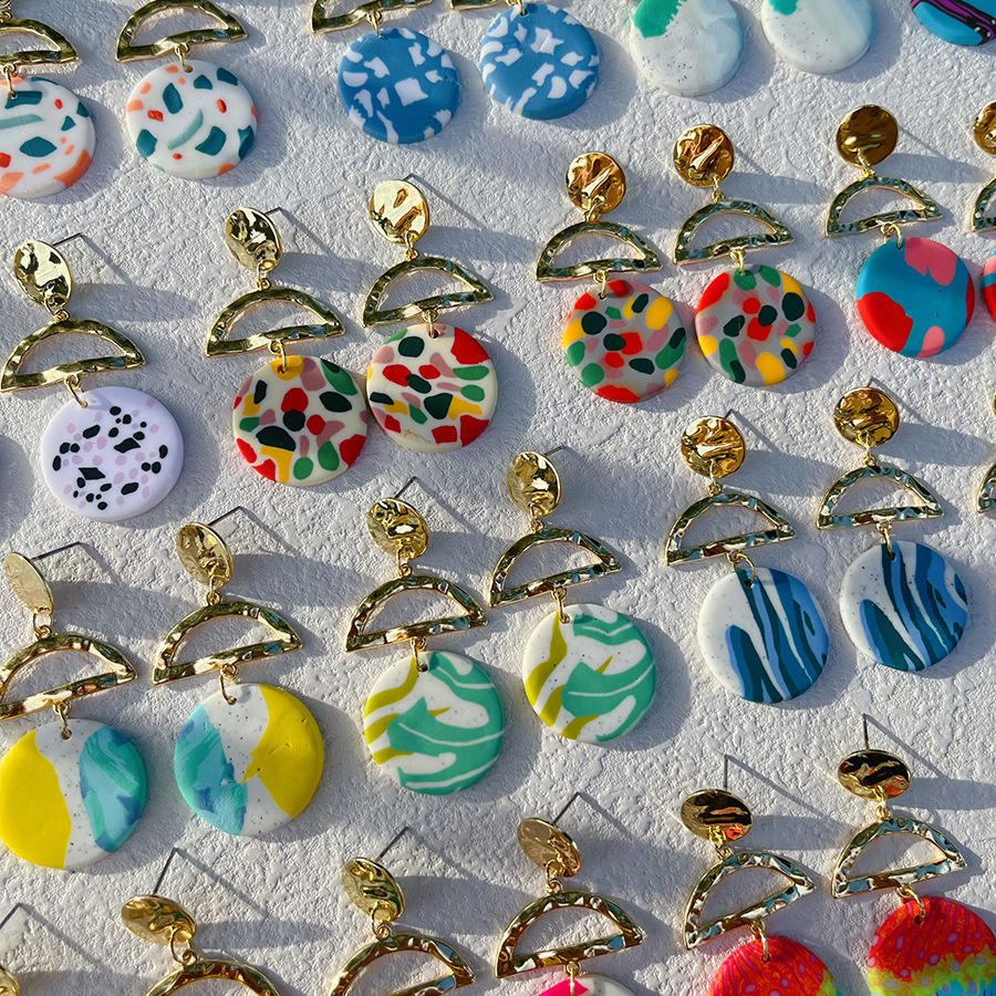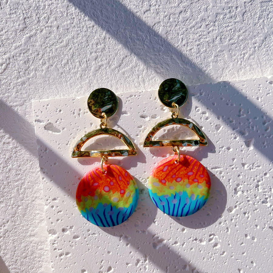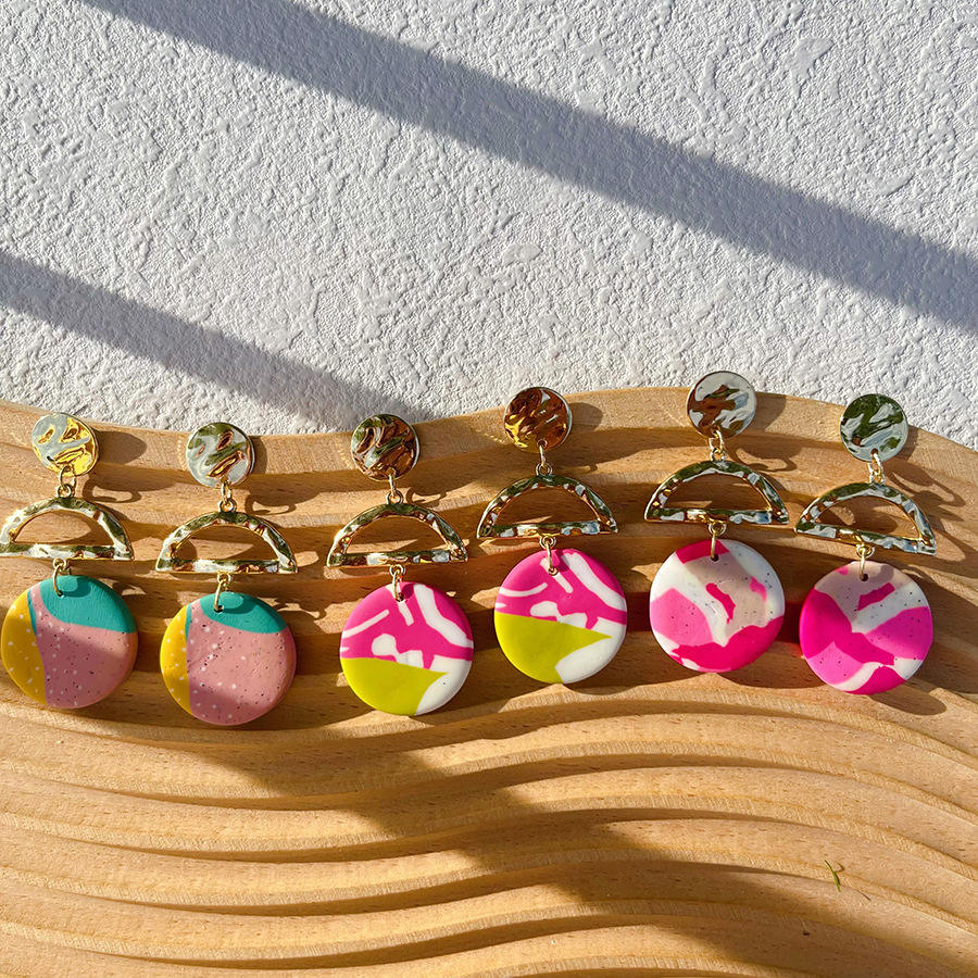 Orecchini Geometrici Colorati in Oro per Donne, Orecchini a Perno Rotondi in Argilla Polimerica