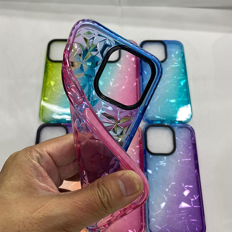 Cover TPU con Motivo Diamantato Sfumato Colorato per iPhone 11 Pro Max con Bordo in TPE e Assorbimento degli Urti con Cuscino d'Aria