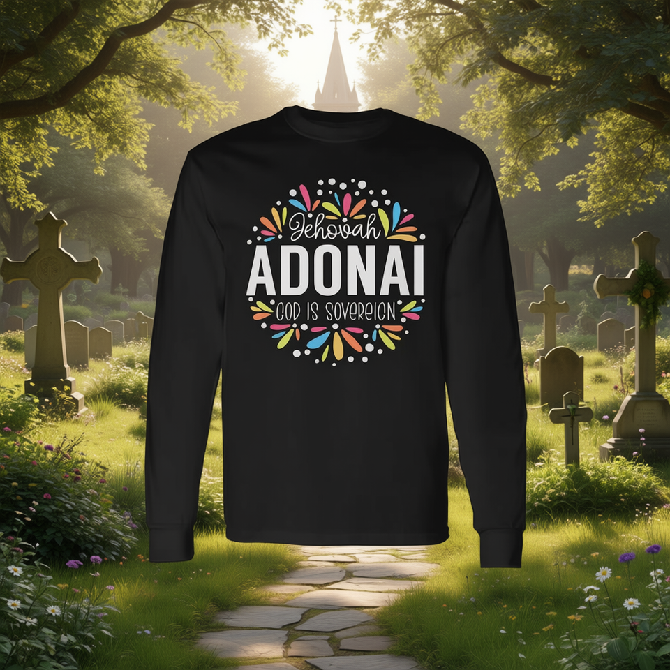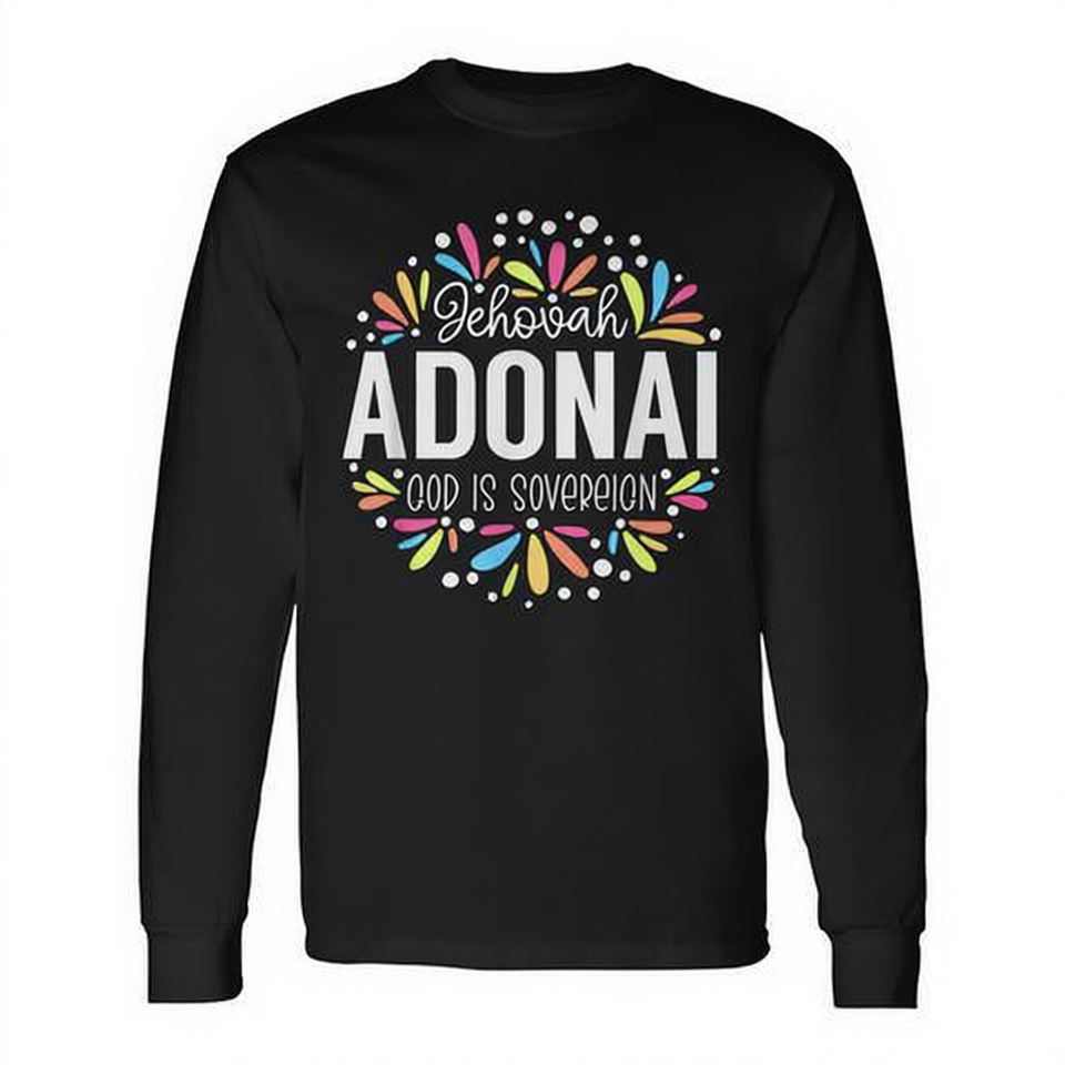 T-Shirt a Maniche Lunghe con Grafica Colorata 'Jehovah Adonai Dio è Sovrano' per Promozioni Religiose