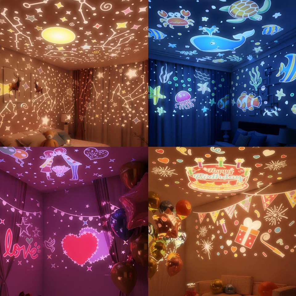 Vita colorata 181 simpatico coniglio proiezione Plug-in rotante cielo stellato caldo dimmerabile camera da letto centrale compleanno natale luce notturna