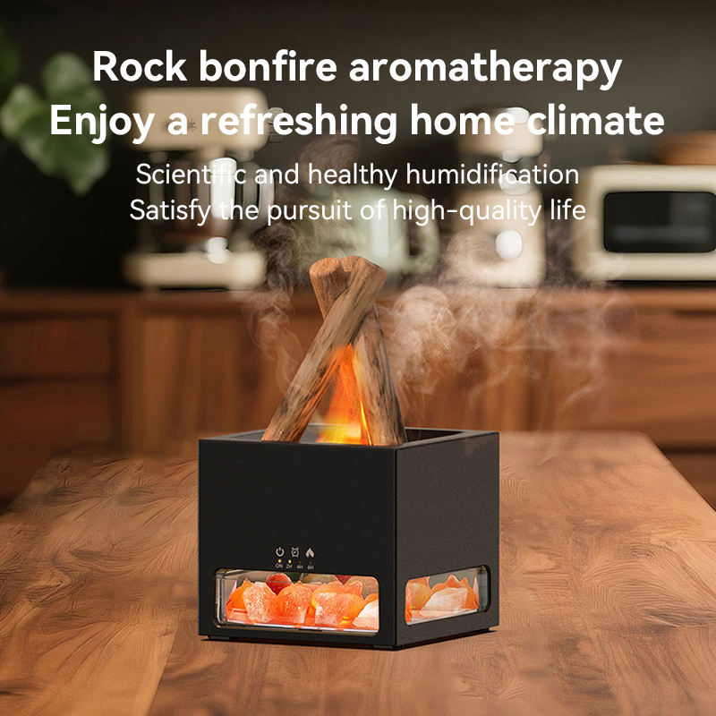 Diffusore di Aromi con Luci Colorate, Simulatore di Falò da Tavolo, Diffusore di Oli Essenziali con Effetto Fiamma e Pietra di Sale