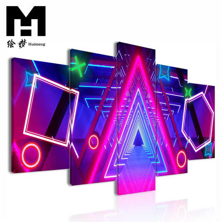Colorato al Neon canale Gamer immagine immagine sala gioco stampato moderno 5 pannelli parete arte tela pittura
