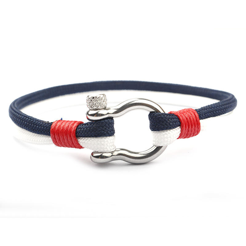 Bracciale da uomo con gancio per pesci in acciaio inossidabile con corda di Nylon colorata, bracciale con bracciale a treccia