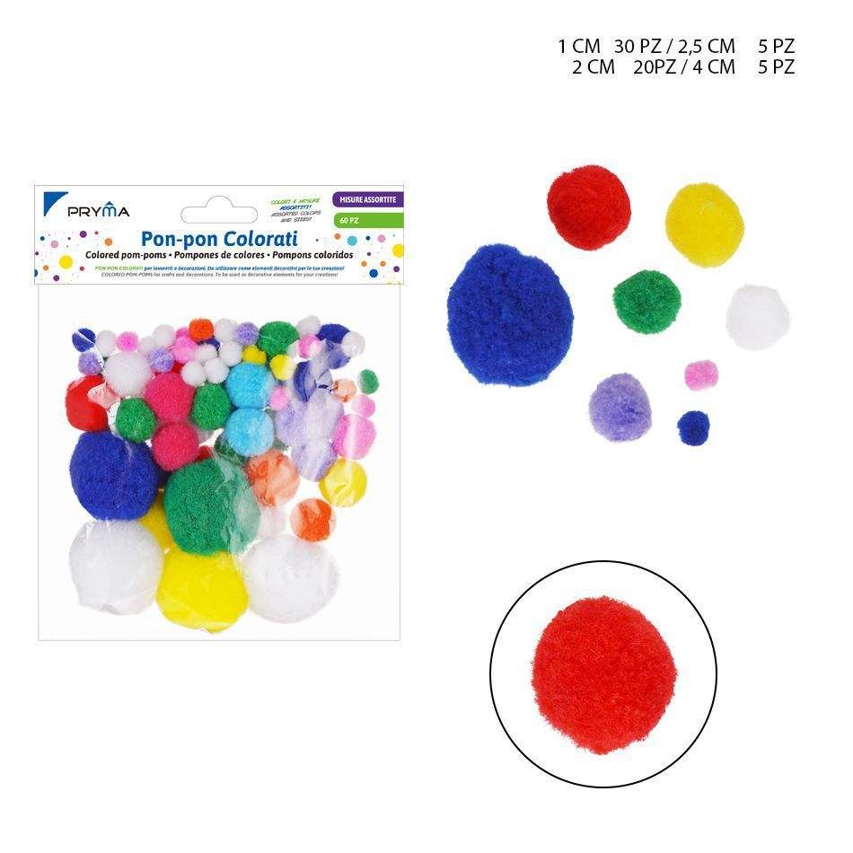 Pompon colorati n. 4/2/1/2.5 60 pezzi-artigianato e decorazione