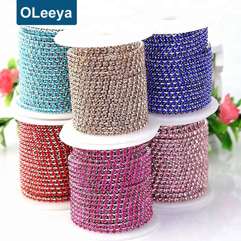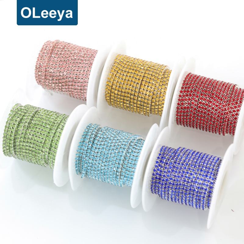 Catene di Strass Colorati SS12 3mm con Base Argento, Oltre 25 Tipi di Cristalli AB per Abiti da Sposa