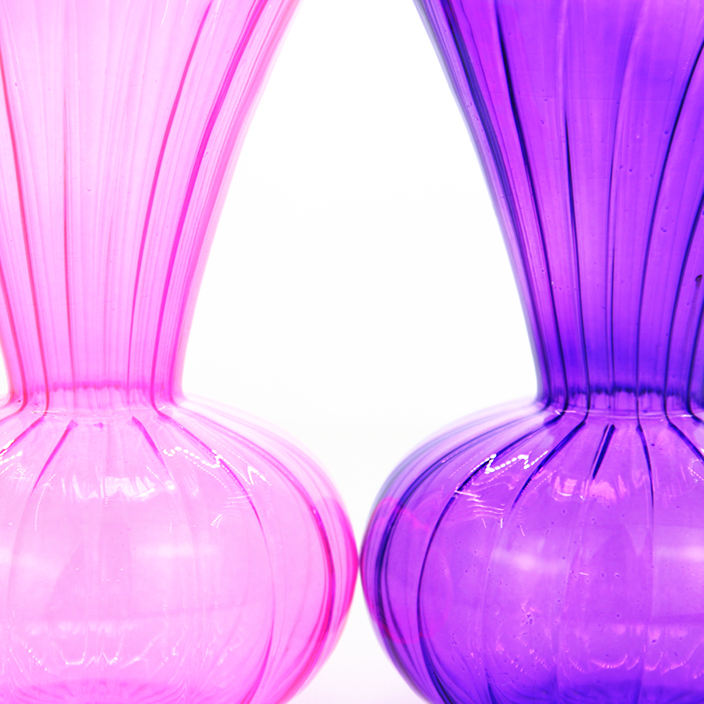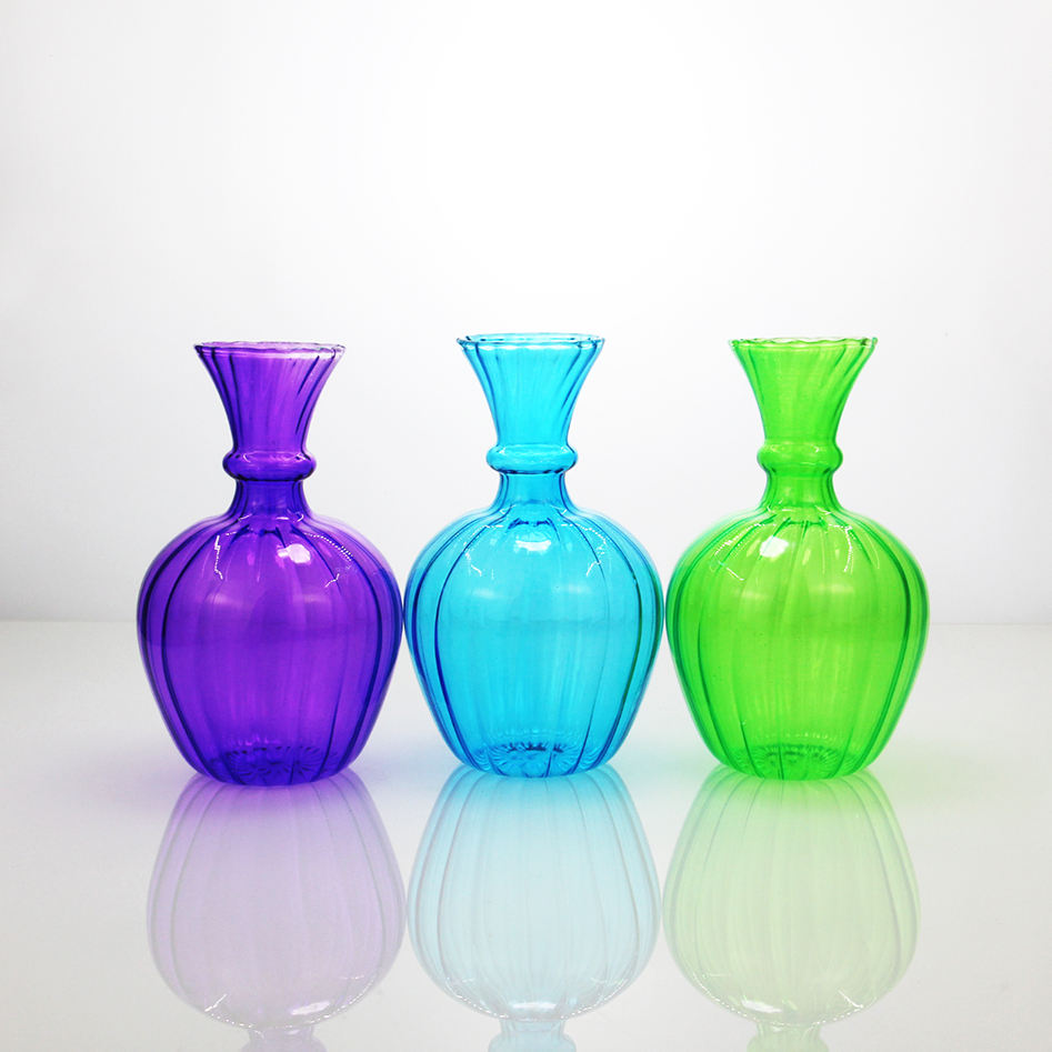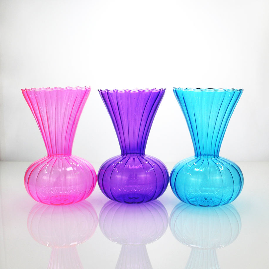 Set di Vasi in Vetro Colorato Scanalato, Vasi Decorativi con Bordo Ondulato e Forma Bombata per un Arredamento Vivace