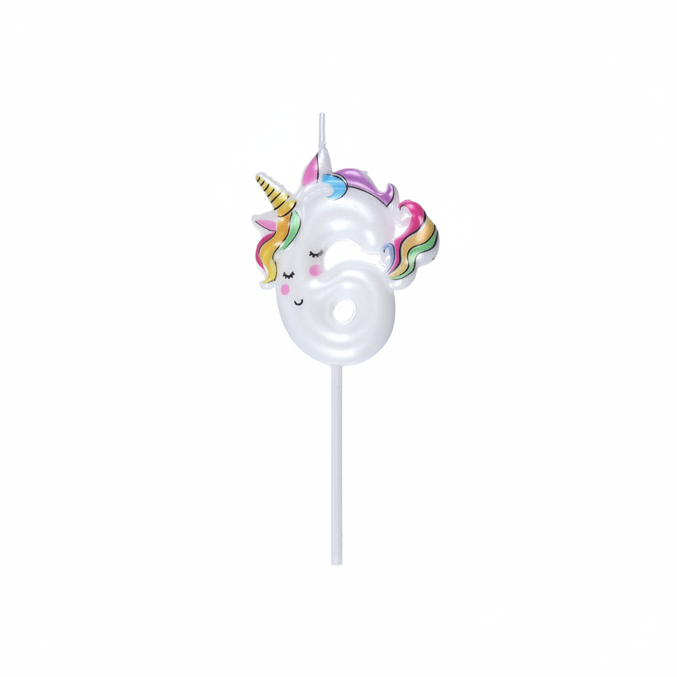 Candela di Compleanno Numero 6 Unicorno Colorata Peiyong, Design Affusolato, per Compleanni, Pasqua, Capodanno, Confezione in Scatola di Cera