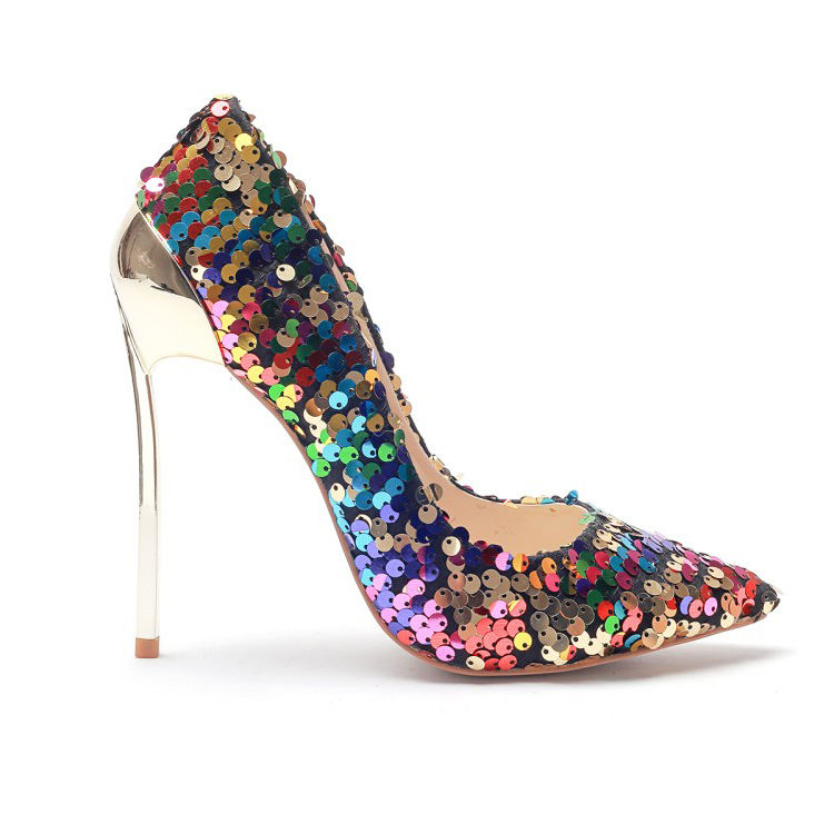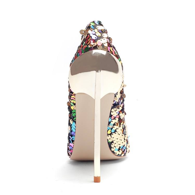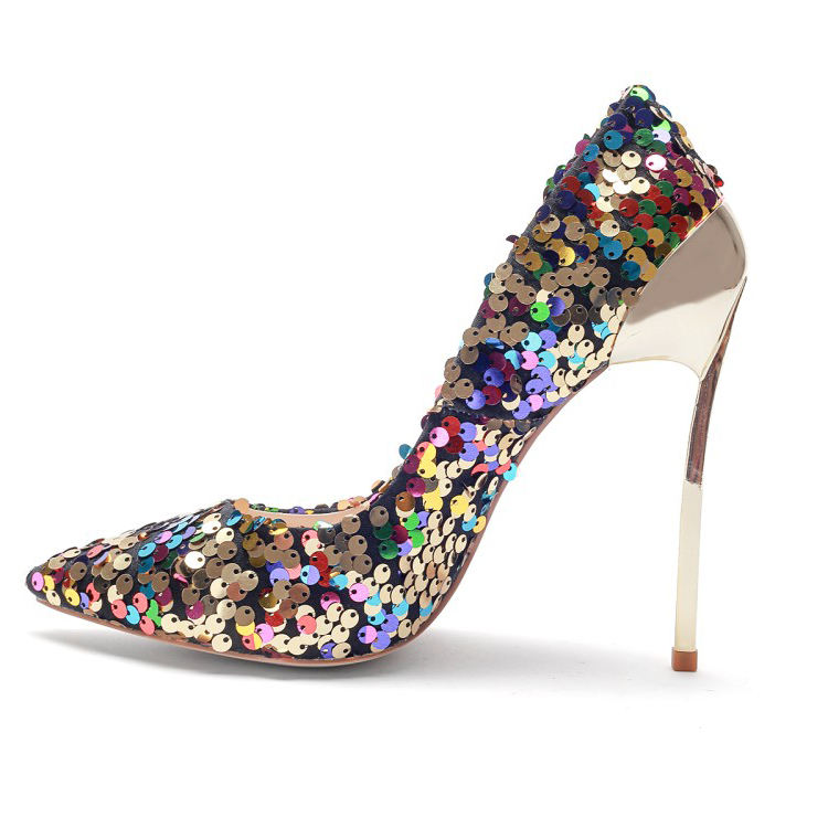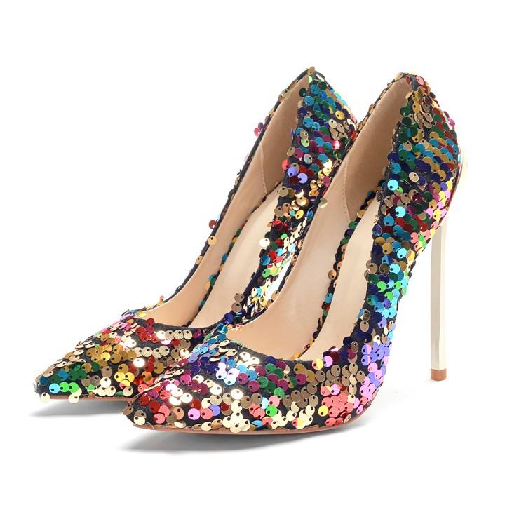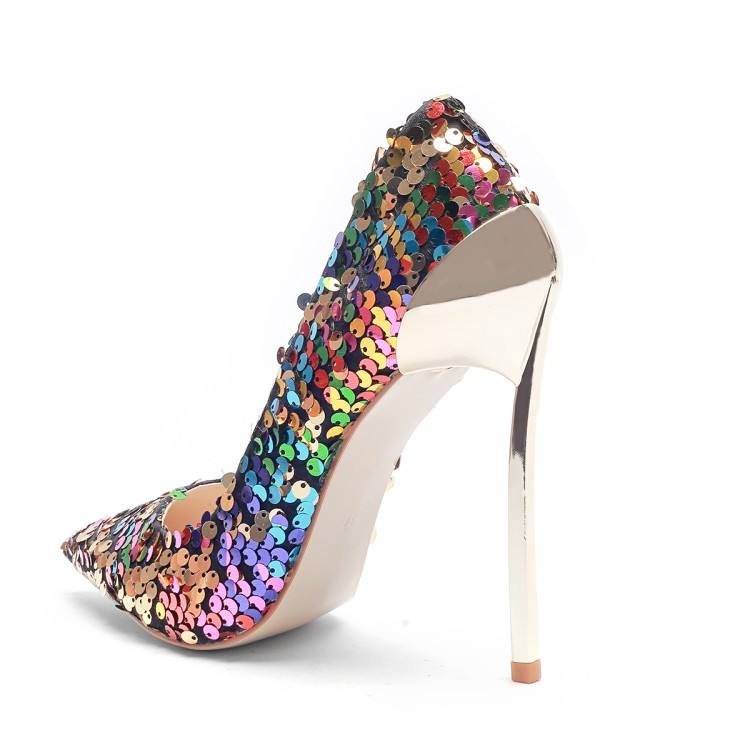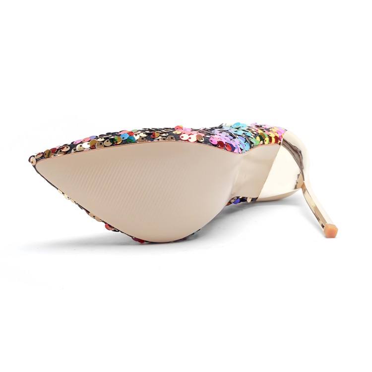Decorazioni di scarpe con tacco da donna con paillettes rosse colorate per feste da donna
