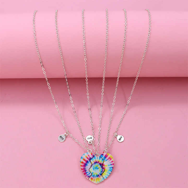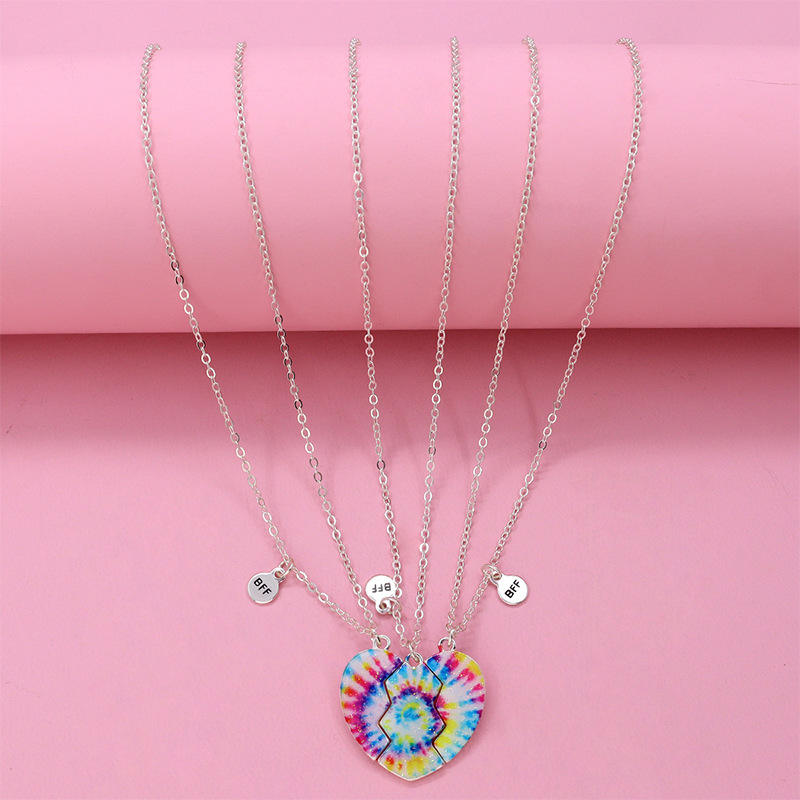 Colourful 3 Piece BFF Enamel Heart Pendant Necklace Kids Unique Birthday Gifts for Best Friend