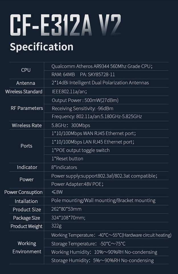 Comfast CF-E312A V2 Long Range 5-10Km PTP 650mbps Outdoor Wireless CPE Wifi Bridge CCTV Camera New 5.8GHz wireless CPE outdoor