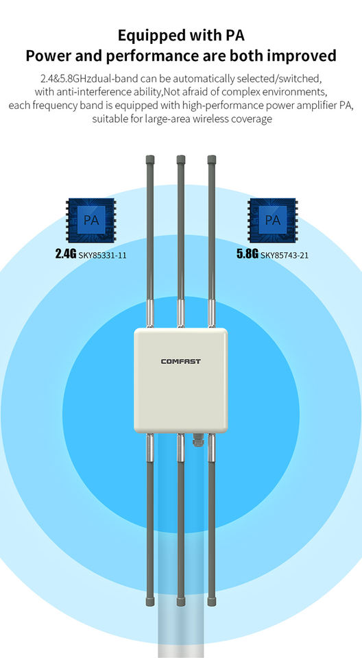 Comfast CF-WA937 Openwrt Router WiFi Dual Band 5.8GHz 3000Mbps con Antenna Esterna, Access Point Wireless AC a Lungo Raggio IP66