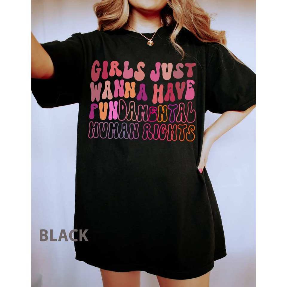 Comfort Colors Girls Just Wanna Have Fundamental T-Shirt Women's Feminist Casual Loose Fit 100% Cotton Crew Neck Short Sleeve