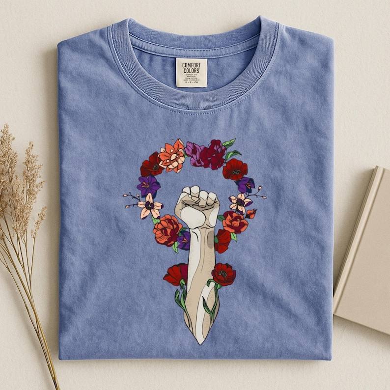 Comfort Colors T-Shirt Unisex Cotton Floral Fist Design International Women's Day Feminist Gift