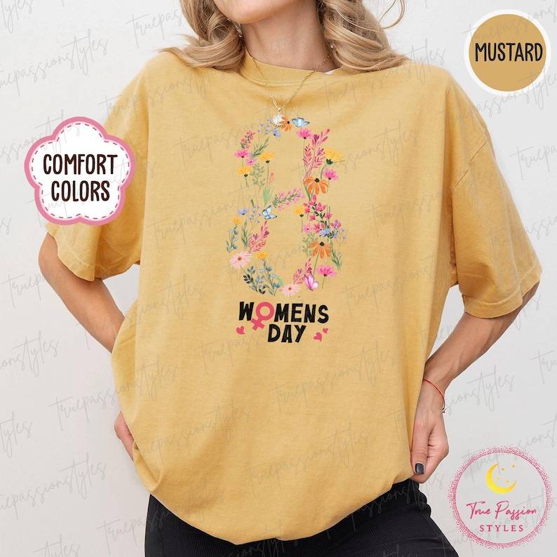 T-shirt da Donna Comfort Colors per la Giornata Internazionale della Donna, Stampa Floreale, Manica Corta, Vestibilità Ampia, Primavera-Estate, Collo Tondo, 100% Cotone