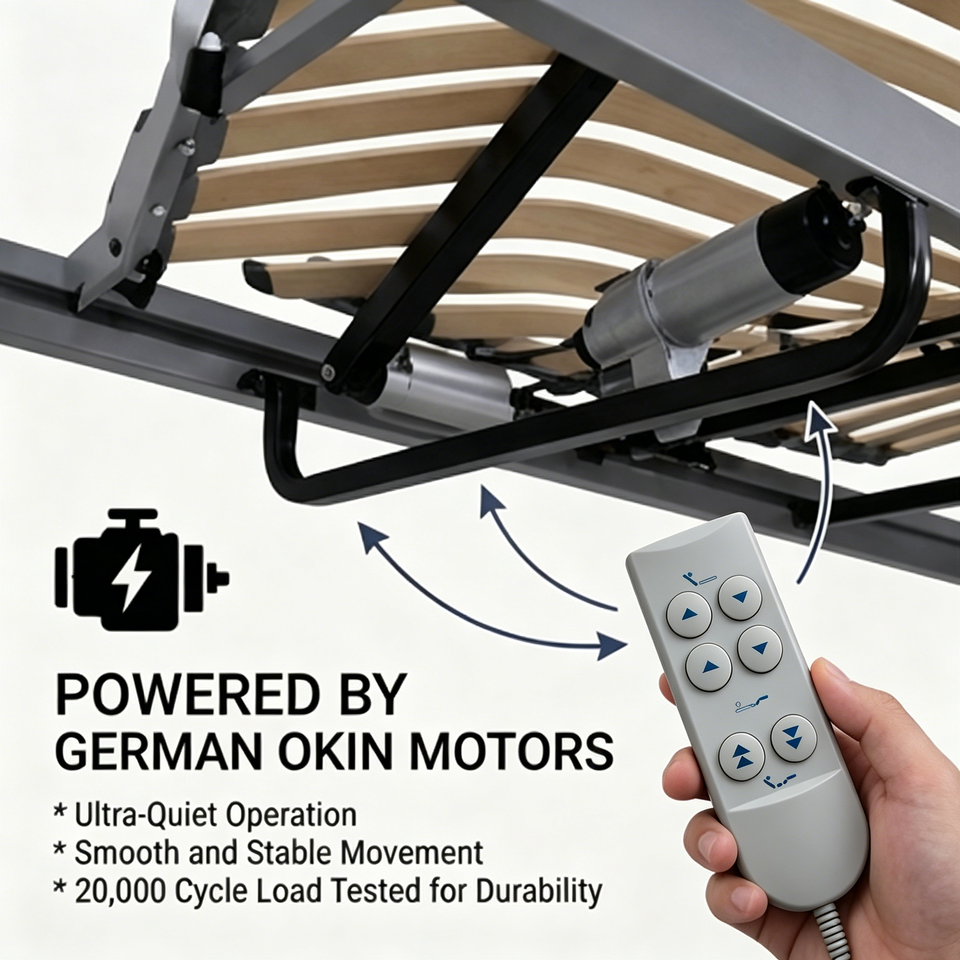 Letto Elettrico Focalizzato sul Comfort con Telecomando Cablato, Testa/Piedi Regolabili, Motore OKIN Durevole, Ideale per Leggere e Guardare la TV