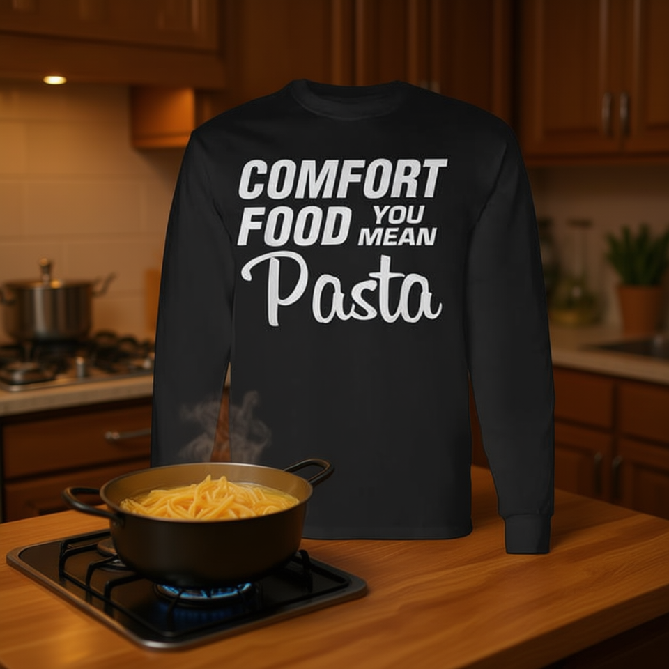 Comfort Food You Mean T-shirt a maniche lunghe con stampa pasta