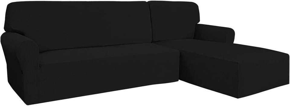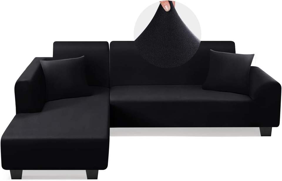 Comfortable OEM Upholstered Long Chaise Sofa in Black Fabric with Stylish Transitional Design for Living Room Wholesale Buyers