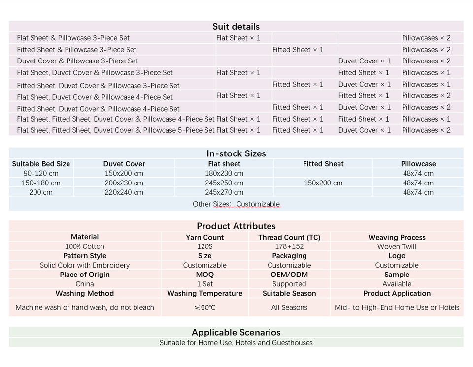 Comfortable Sleep Bedding Set Soft, Breathable 100% Cotton Bed Set for Home and Hotel Use