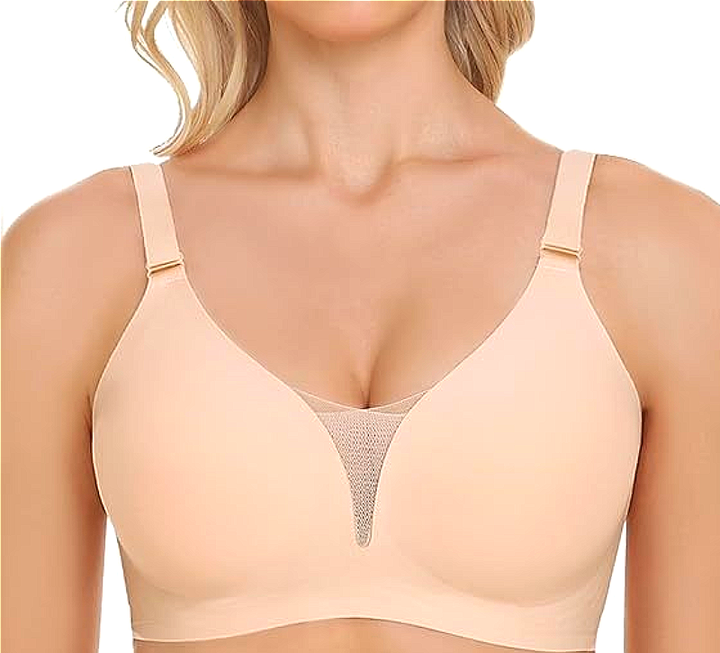 Reggiseno Bralette da Donna Taglie Forti Senza Cuciture con Spalline Sottili Regolabili, Push-up, Senza Ferretto, Doppia Rete, Scollo a V Profondo, Chiusura Posteriore Unica