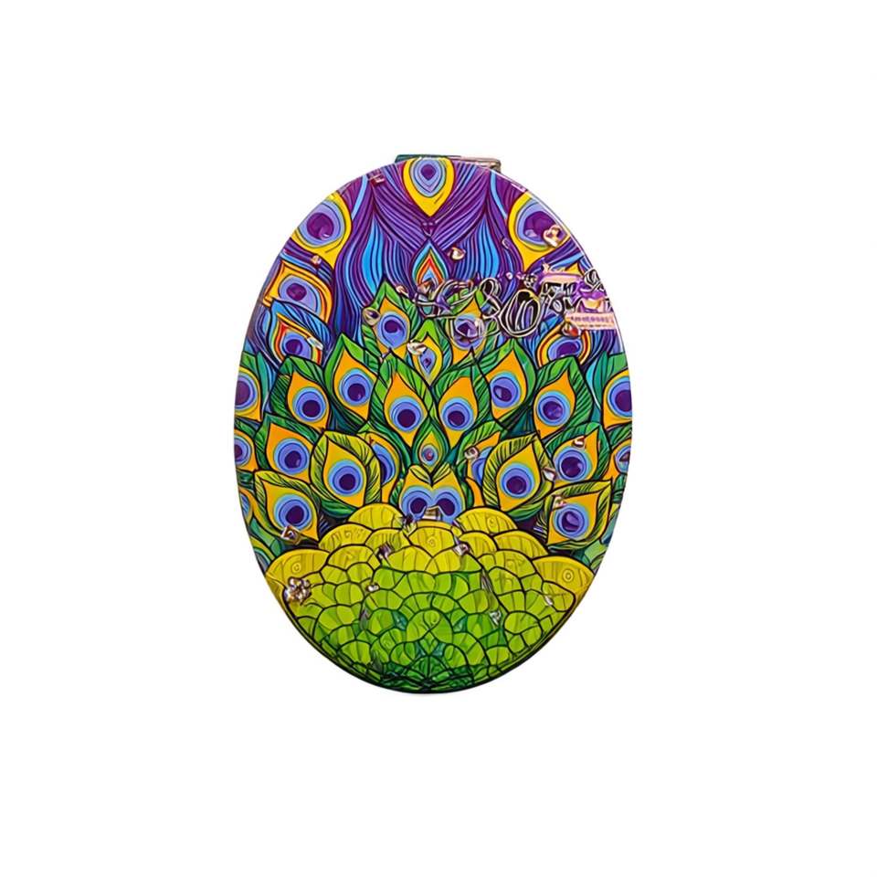 Comme Moi Oval Portable Makeup Mirror 8.6x6.2Cm Plastic Compact With Colorful Peacock Design Bohemian Style For Women