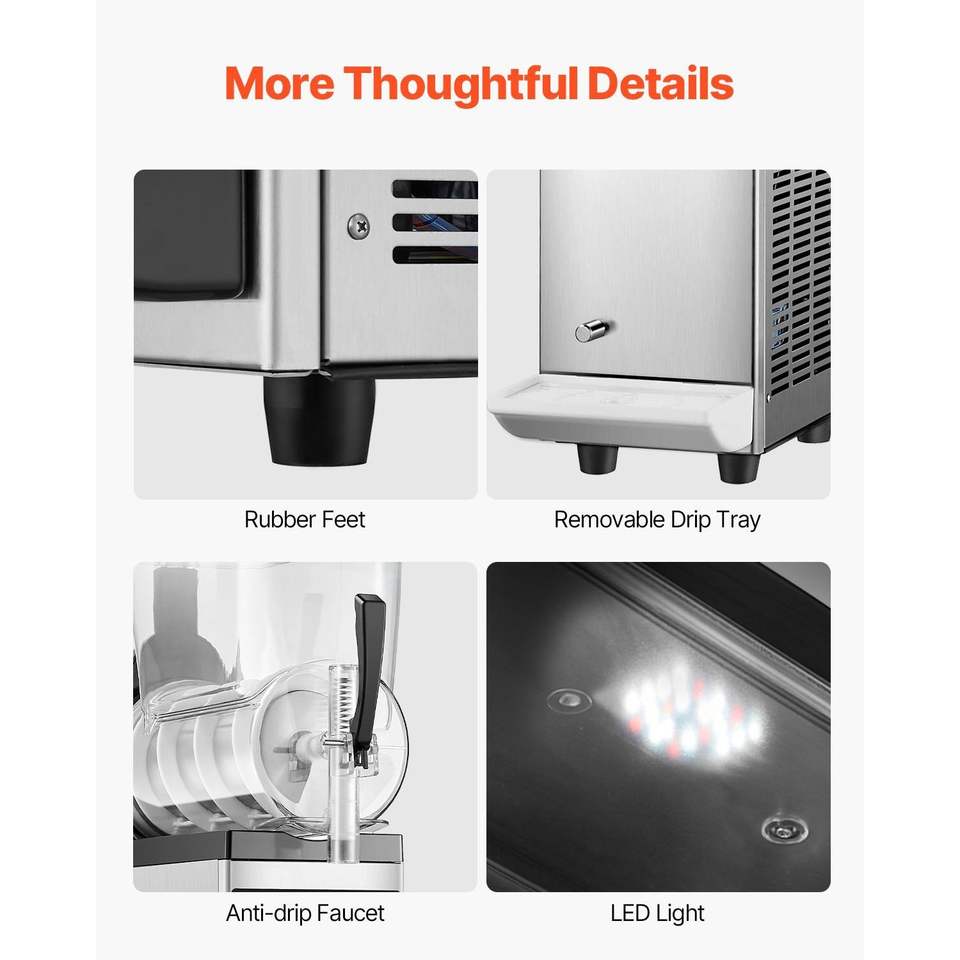 Macchina Professionale per Bevande Ghiacciate da 12L, Dispenser per Smoothie e Margarita in Acciaio Inox con 48 Bicchieri