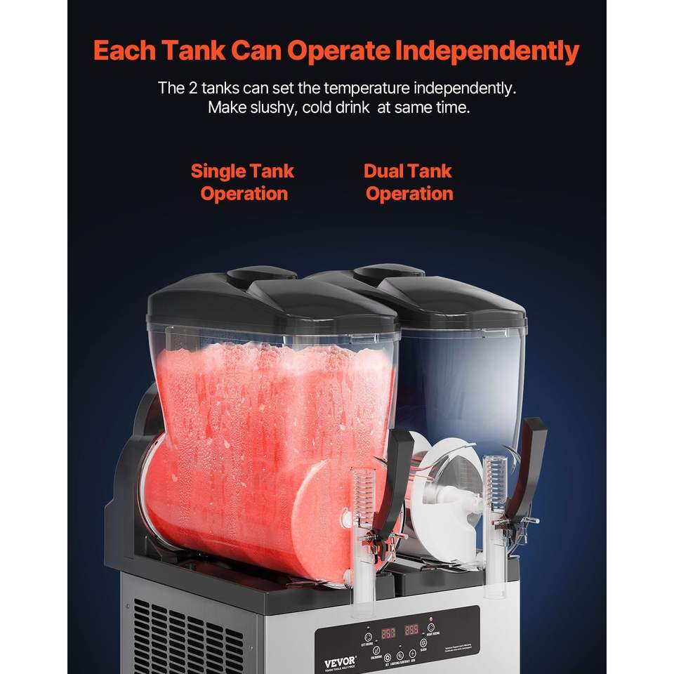 Macchina per Slushy Commerciale a Doppio Serbatoio 12Lx2 in Acciaio Inox, Dispenser da 96 Bicchieri per Margarita Ghiacciata e Bevande Smoothie