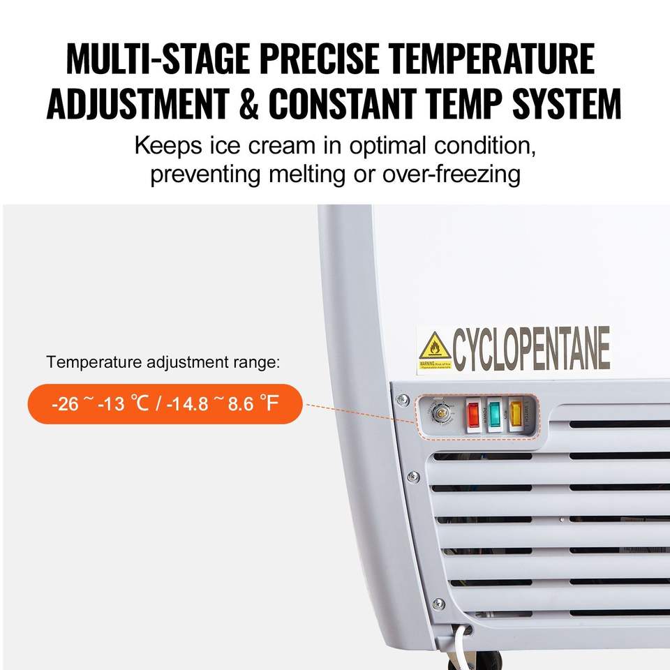 Congelatore orizzontale commerciale da 13,1 piedi cubi con vetrina espositiva per gelato e coperchio mobile in vetro, ideale per ristoranti e uso come vetrina per gelato.