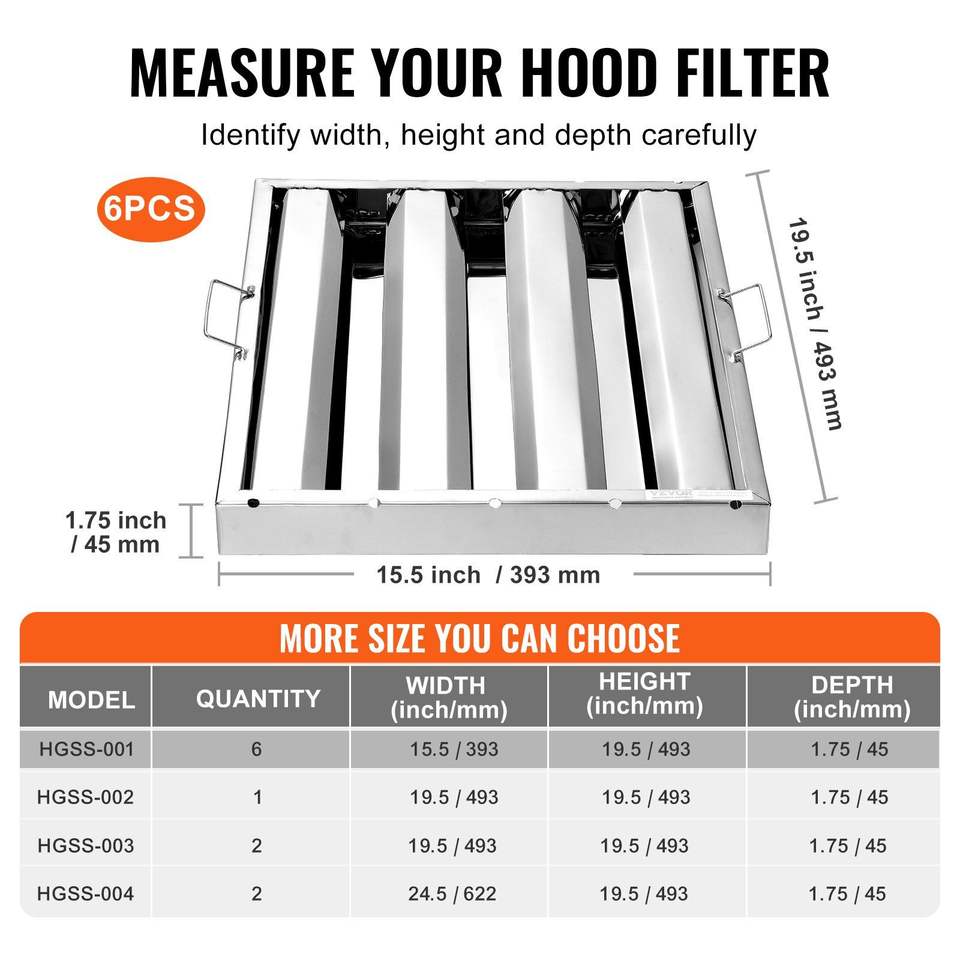 Filtri per Cappe da Cucina Commerciali in Acciaio Inossidabile 15.5W x 19.5H Pollici, Filtri Antigrasso per Cappe da Ristorante, Ricambi per Cappe da Cucina