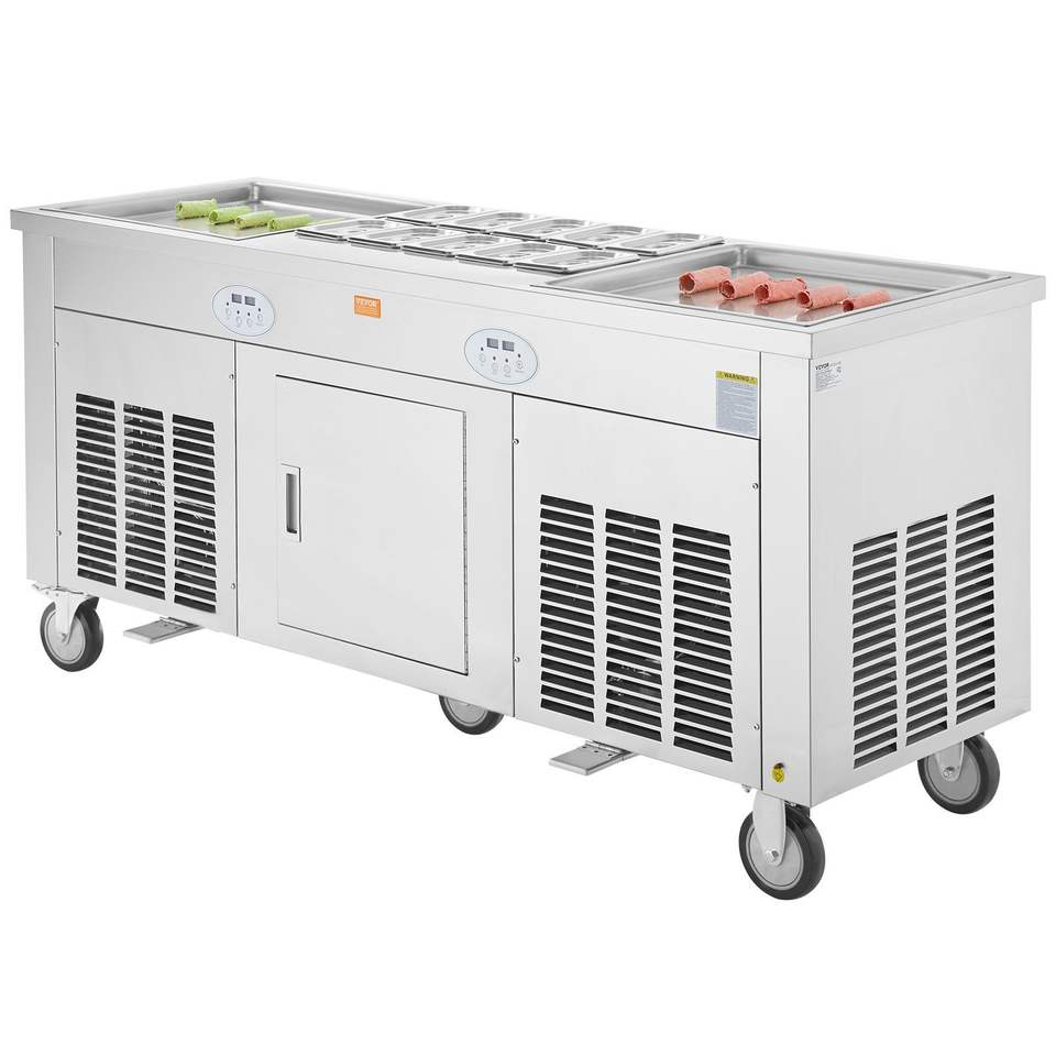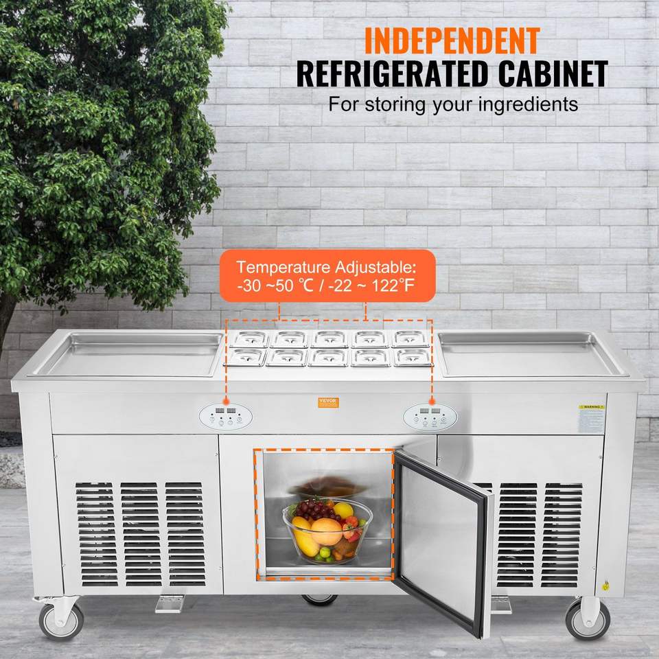 Macchina Commerciale per Gelato Arrotolato in Acciaio Inossidabile 45x45 cm, Padelle Quadrate per Gelato Fritto con 2 Pezzi per Gelato Arrotolato