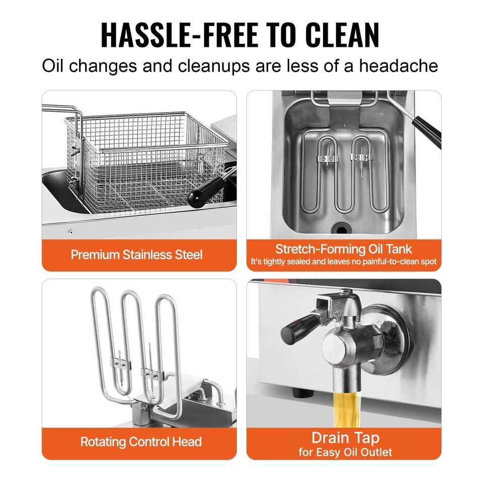 Friggitrice Elettrica Commerciale da Banco 1750W con Cestello Singolo da 9Qt/8.5 L in Acciaio Inossidabile Spesso 1mm per Attività Commerciali