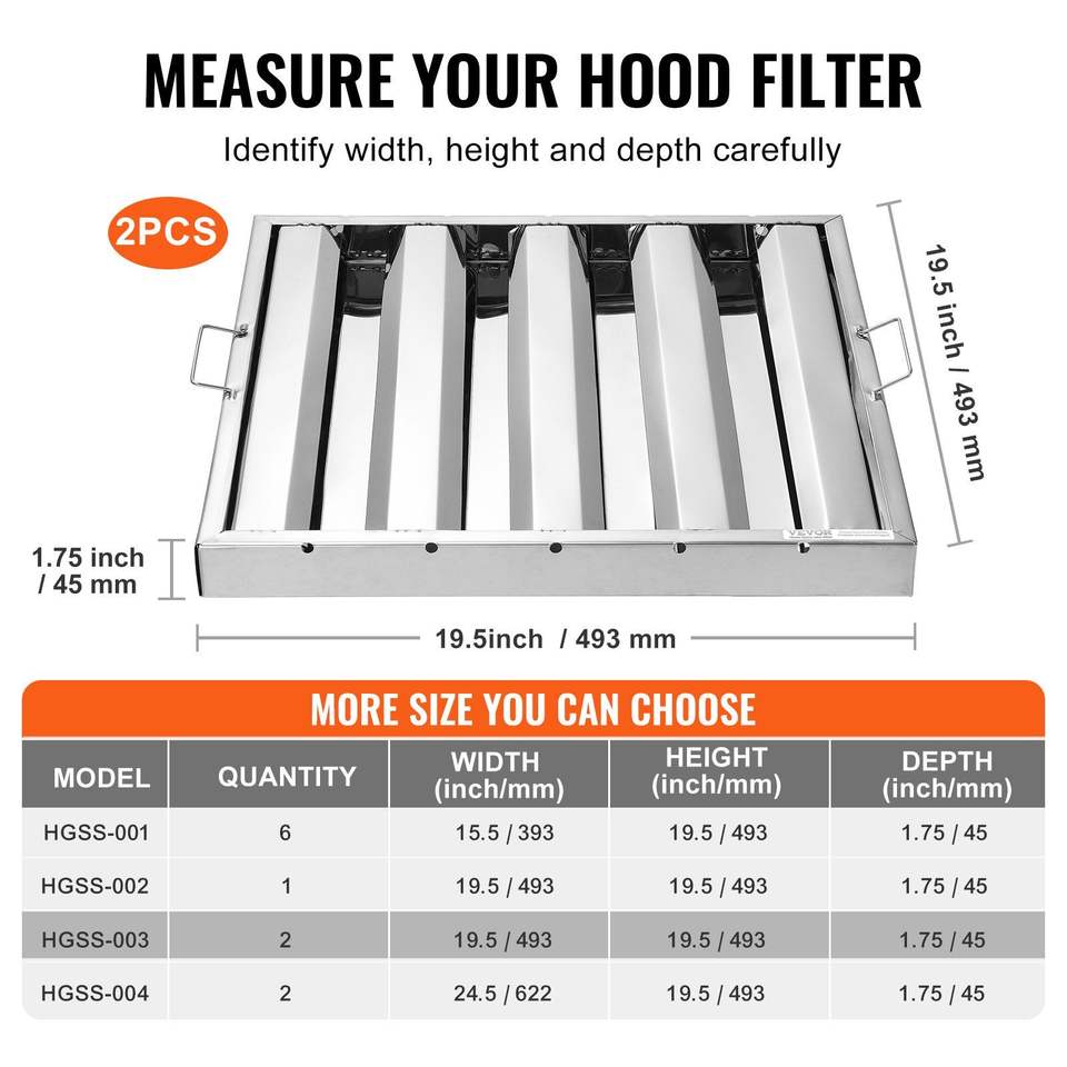 Filtro antigrasso commerciale in acciaio inossidabile da 19,5 x 19,5 pollici per cappe da cucina professionali e ristoranti