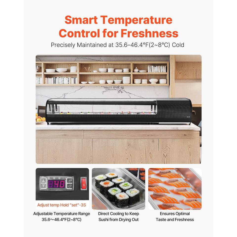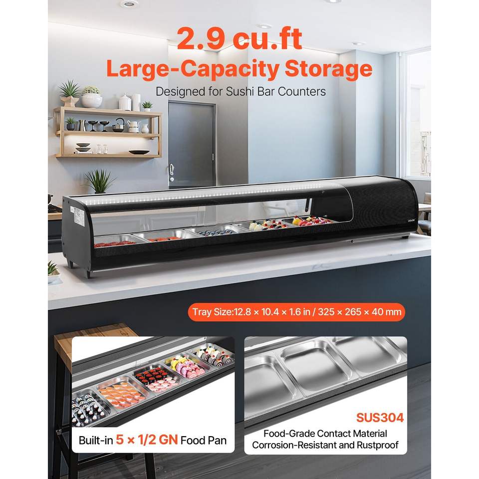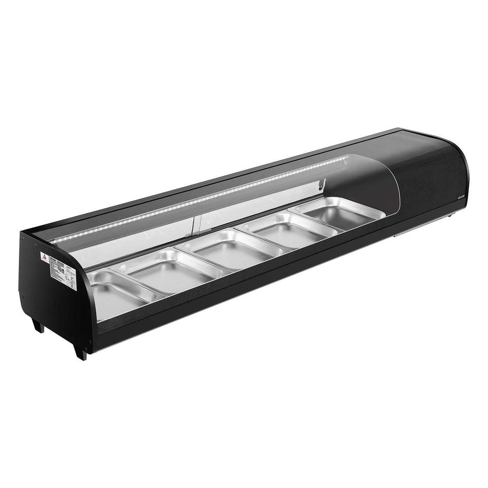 Vetrina Refrigerata Commerciale per Sushi da 2,9 Cu.ft, Espositore da Banco a 5 Vaschette con Vetro Curvo e Illuminazione LED, Congelatori e Frigoriferi