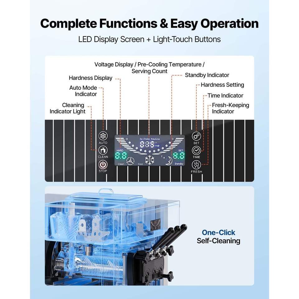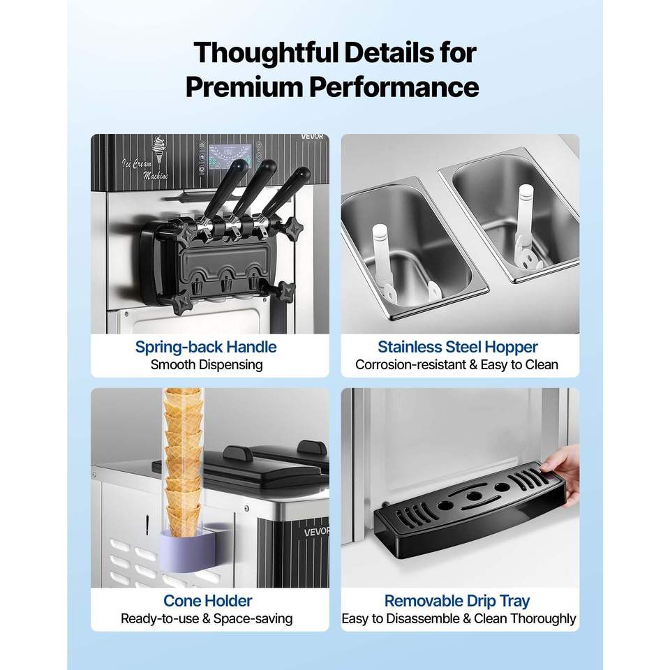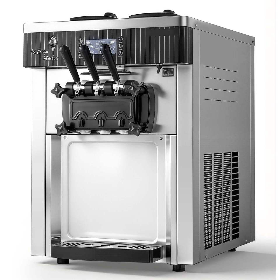 Macchina Professionale per Gelato Soft a 3 Gusti, 2200W, Produzione 20-28L/H, con 2 Contenitori da 6L, Serie 2020
