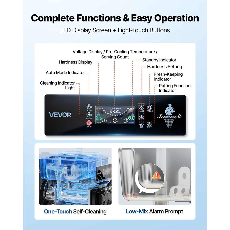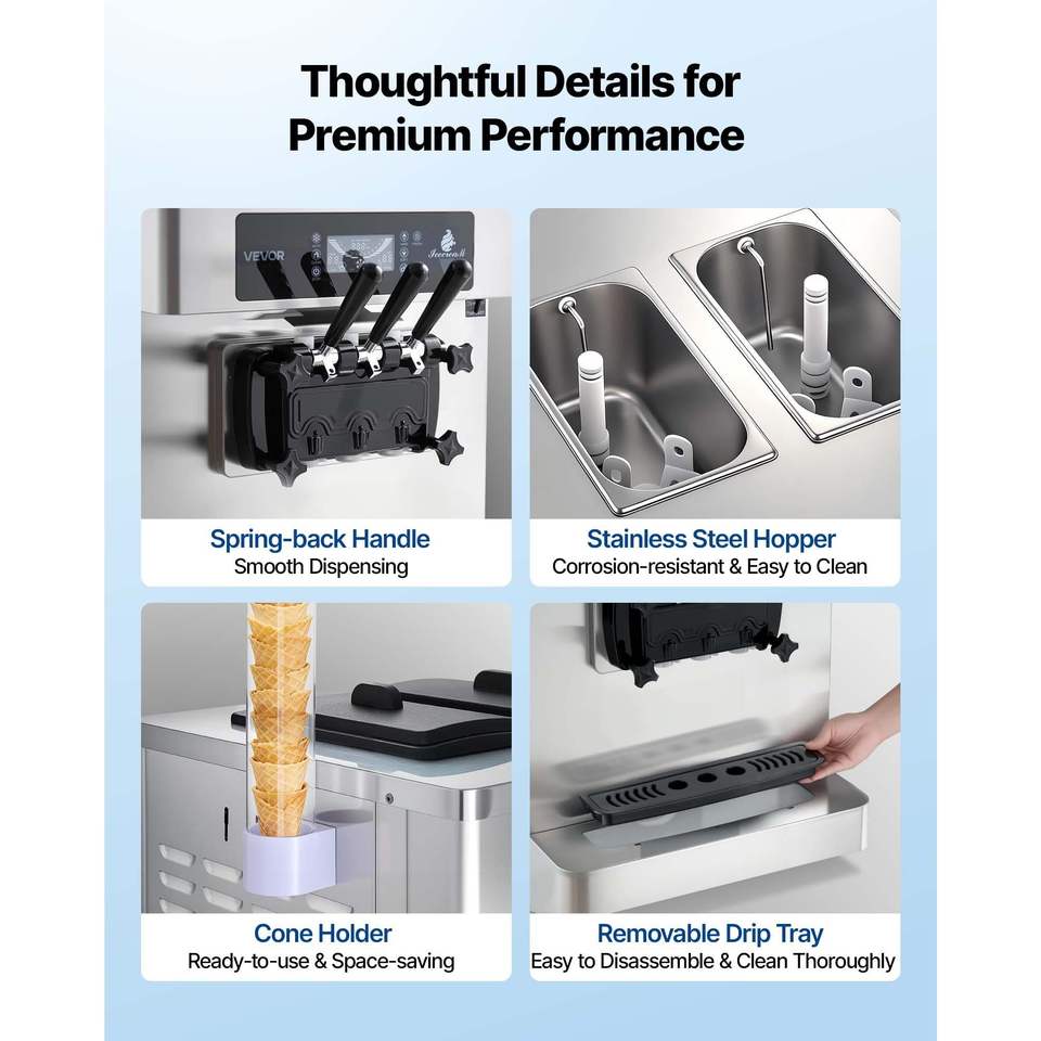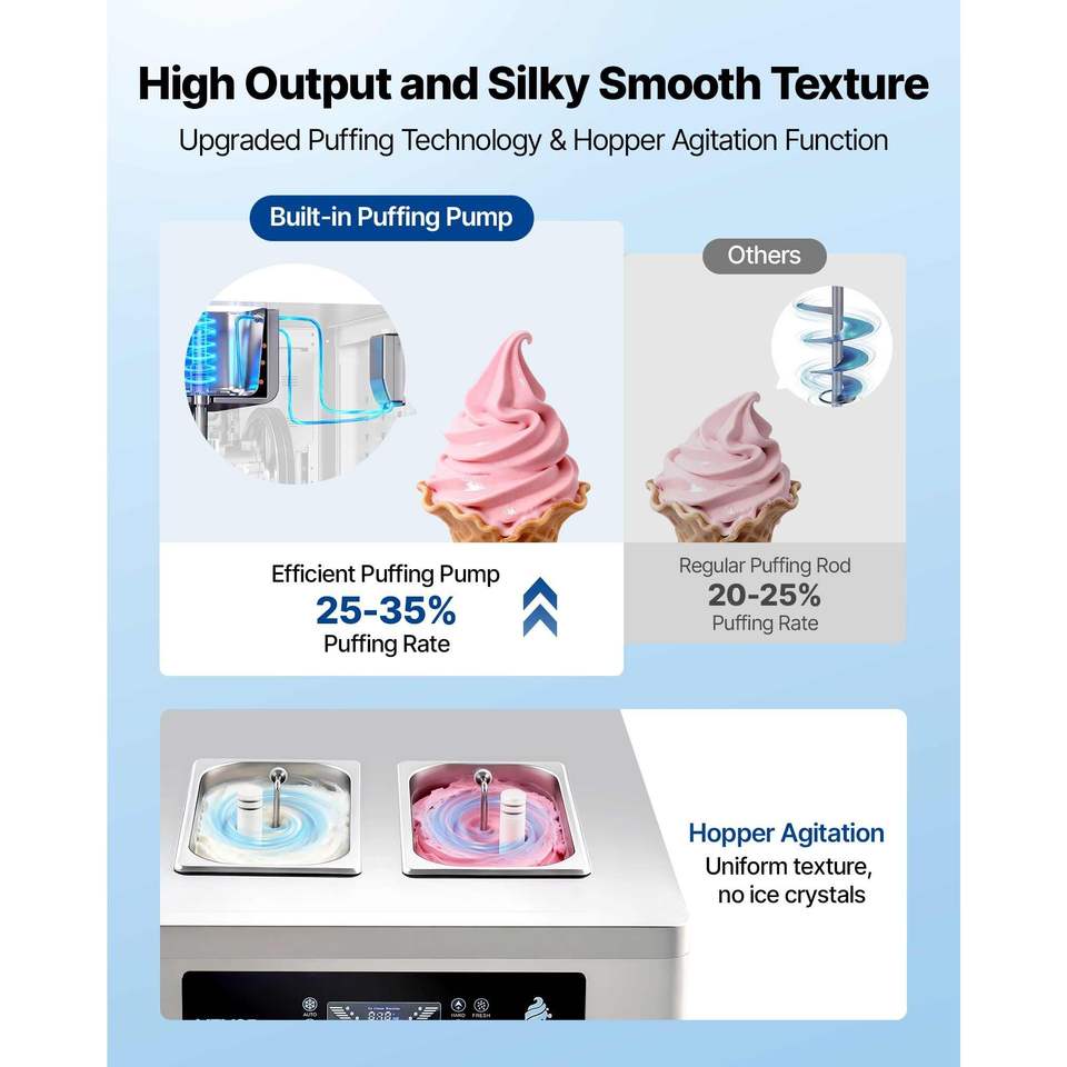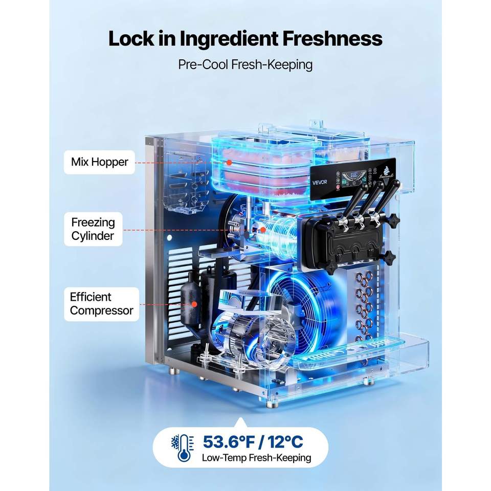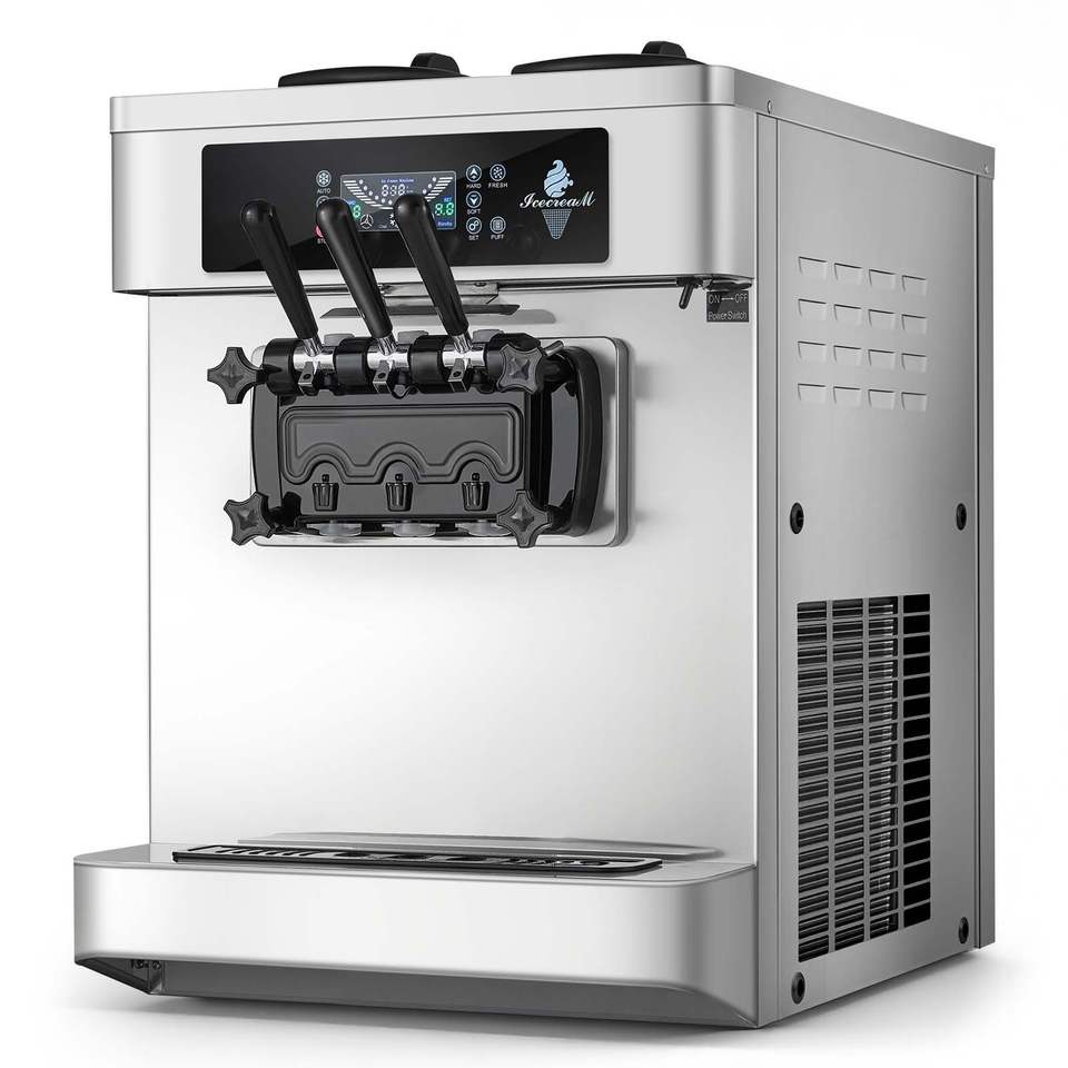 Macchina Professionale per Gelato Soft a 3 Gusti, 2200W, da Banco, Produzione 20-28L/H con 2 Contenitori da 6L Integrati