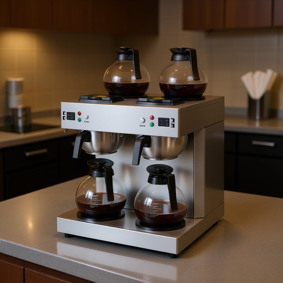 Macchina da Caffè Commerciale a Goccia da 24 Tazze con Doppia Testa in Acciaio Inossidabile, 4 Caraffe in Vetro, Scalda Decanter Automatico con Spina Integrata