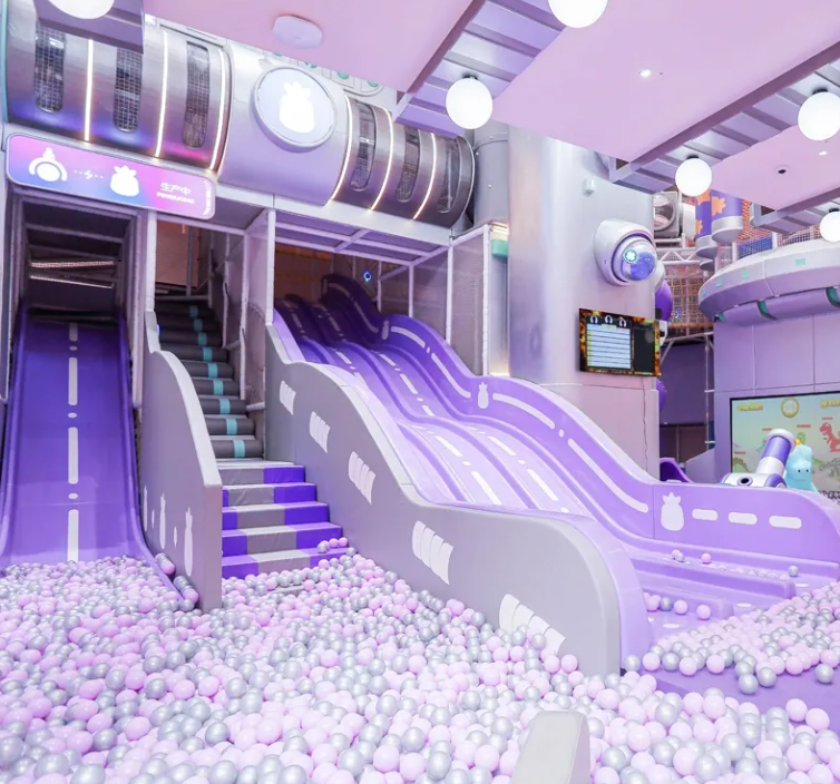 Attrezzatura Commerciale per Parco Giochi Morbido al Coperto di 2500 mq, con Scala in Plastica, Piscina di Palline e Scivolo a Tubo per Bambini